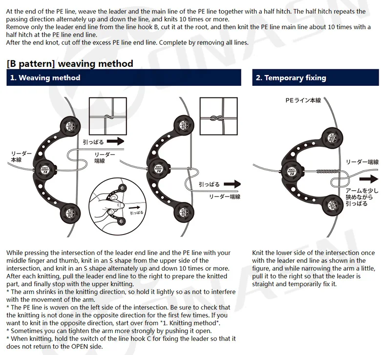 El gancho de línea corrugada de tipo interruptor y el brazo compensado le permiten atar fácilmente, de forma segura y rápida la línea PE y el líder con nudos FG.