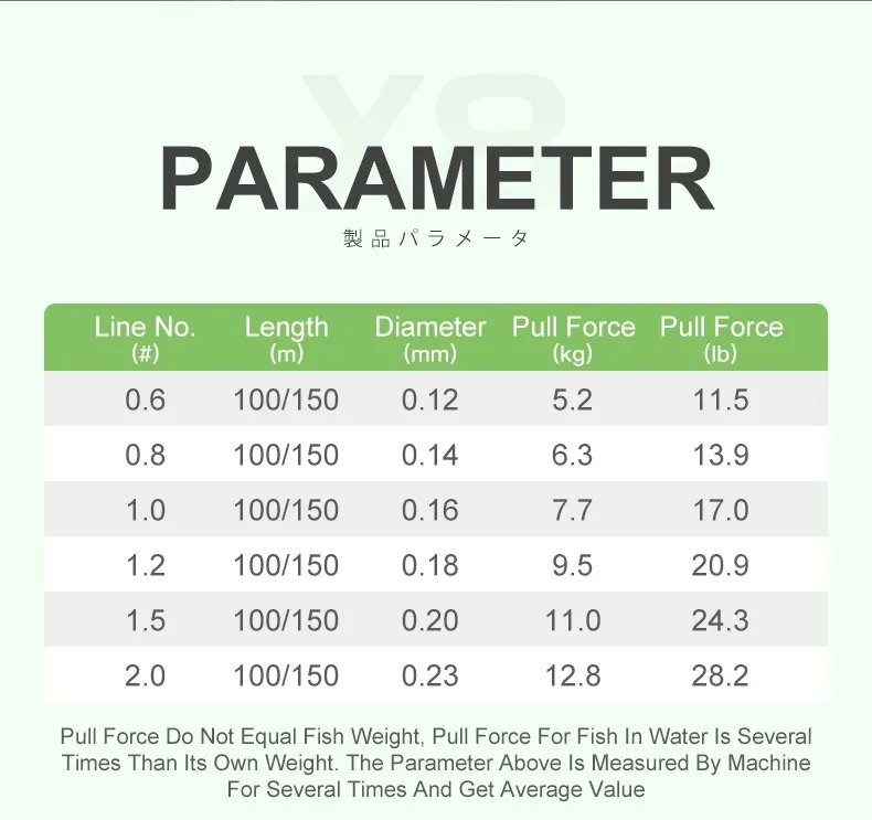 ¡Número de línea no es Diámetro, no fuerza en LB, por favor revise la tabla de tallas cuidadosamente antes del pago, y por favor déjenos un mensaje si algo confundido, Gracias!