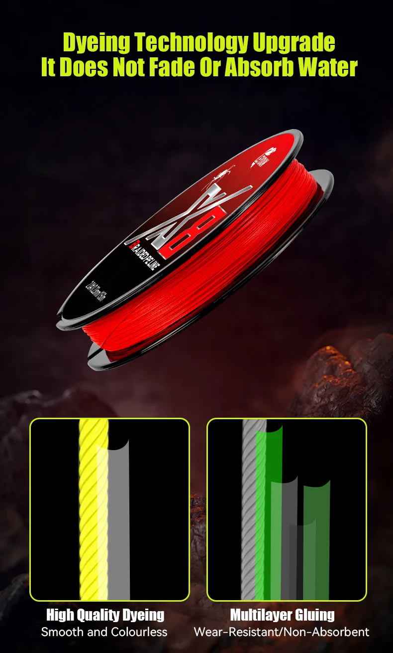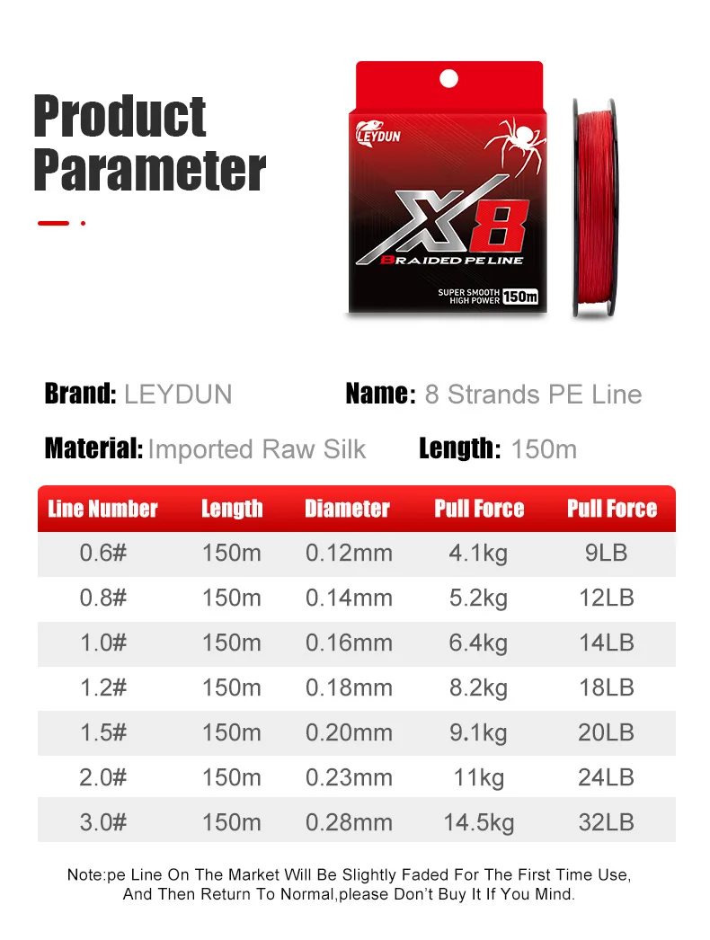 Leydun líneas de pesca rojas 8 hebras trenzadas PE línea que no se decolora 150m Japón línea multifilamento suave alambre de pesca tejido fuerte