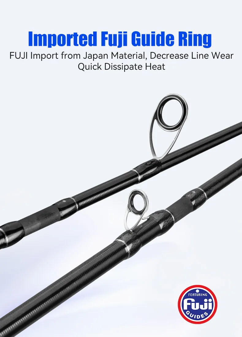 Equipada con guías Fuji, esta caña garantiza un control de línea y una durabilidad óptimos, mejorando su experiencia de pesca.