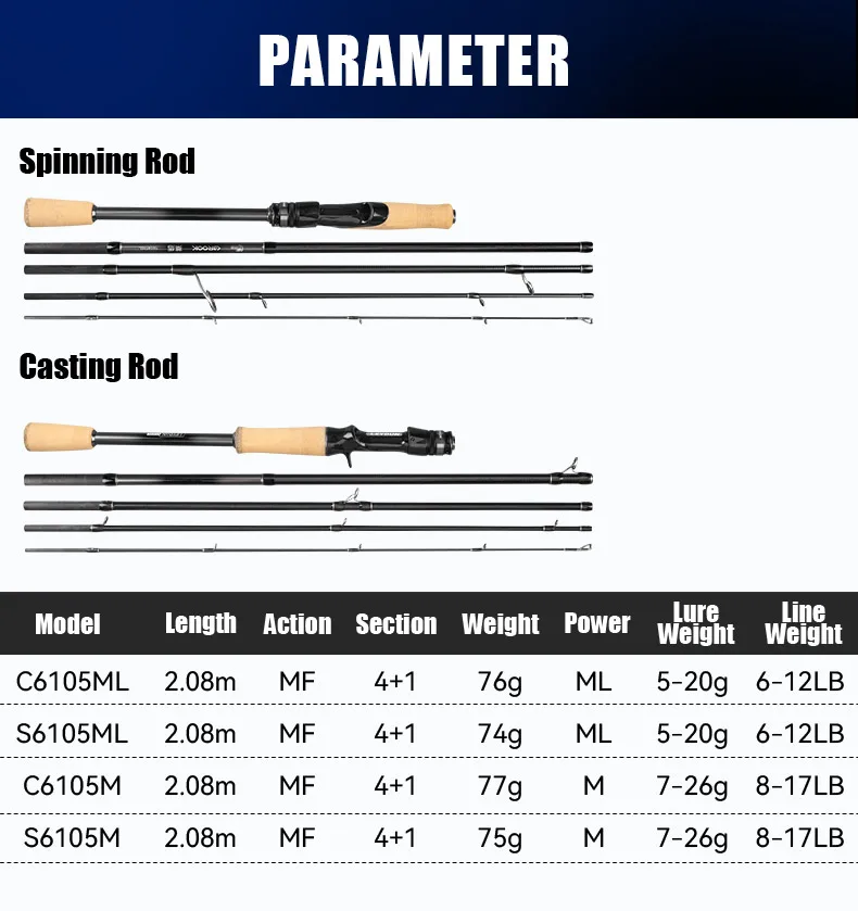 Diseñada como caña de lanzar giratoria de viaje, es perfecta tanto para viajes de pesca nacionales como internacionales, ya que ofrece versatilidad y conveniencia.