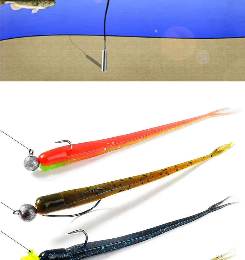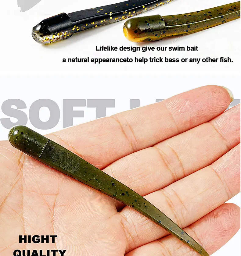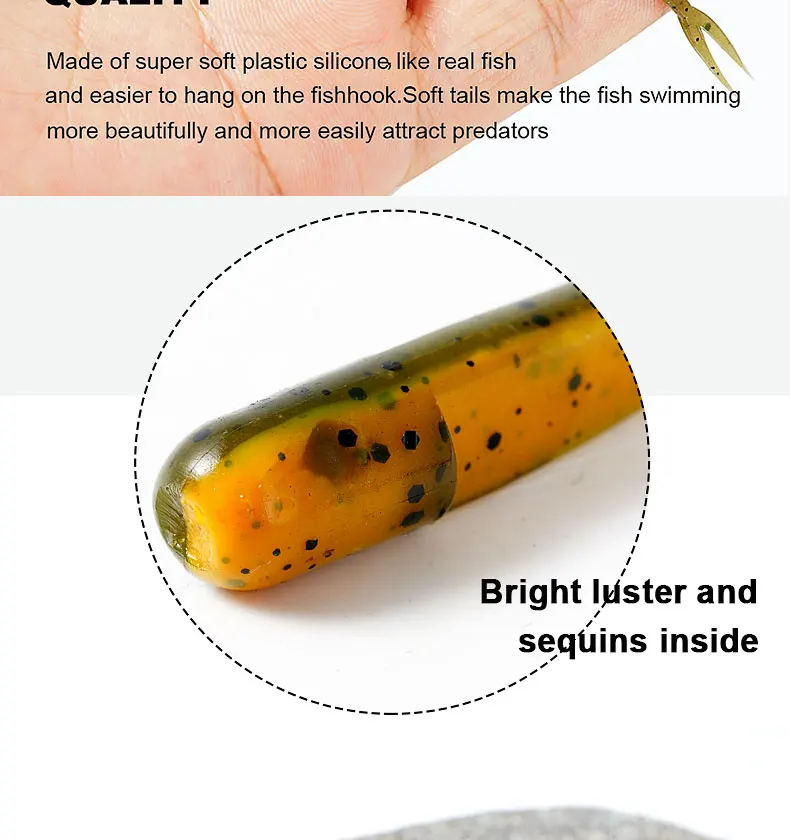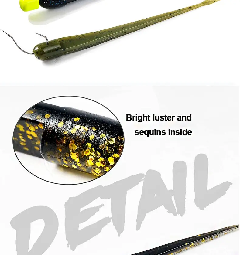 El gusano presenta un diseño de cola recta, que crea una sutil acción de temblor que se levanta del fondo con pequeños movimientos de la varilla.El cuerpo acanalado también produce vibraciones muy suaves que estimulan la línea lateral de los peces y los engaña al pensar que en realidad vive presas.