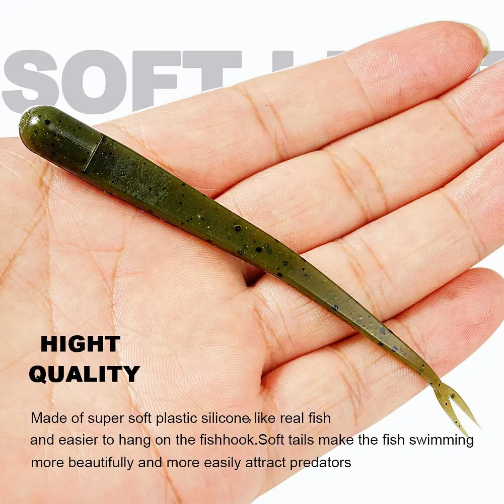 El gusano presenta un diseño de cola recta, que crea una sutil acción de temblor que se levanta del fondo con pequeños movimientos de la varilla.El cuerpo acanalado también produce vibraciones muy suaves que estimulan la línea lateral de los peces y los engaña al pensar que en realidad vive presas.