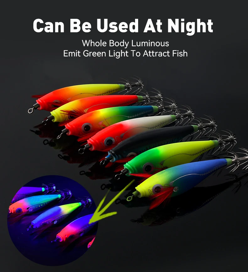 3.Fácil de transportar: el anzuelo de calamar para señuelos de pesca es liviano y fácil de transportar para pescar al aire libre.