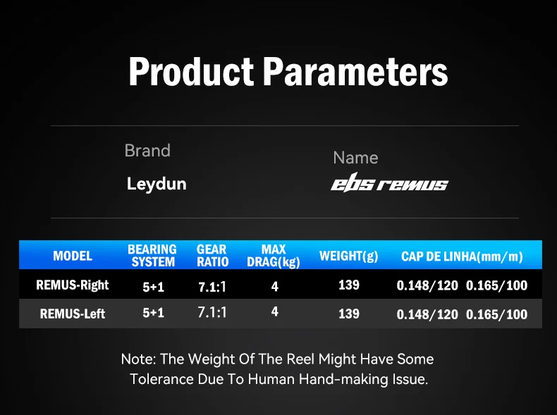 LEYDUN REMUS sistema de frenos electrónicos carretes de pesca Baitcasting 139g 7,1: 1 relación de engranaje 4kg carrete de pesca de Material de carbono ultraligero