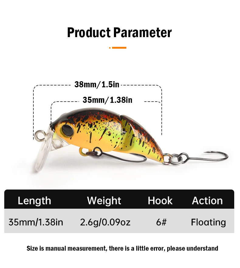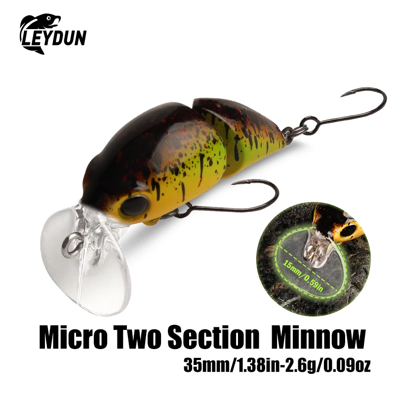 LEYDUN-señuelo de pesca Micro de 35mm y 2,6g de ancho, dos secciones, pececillo flotante, buceo poco profundo, Crankbait, pesca Artificial, Swimbaits