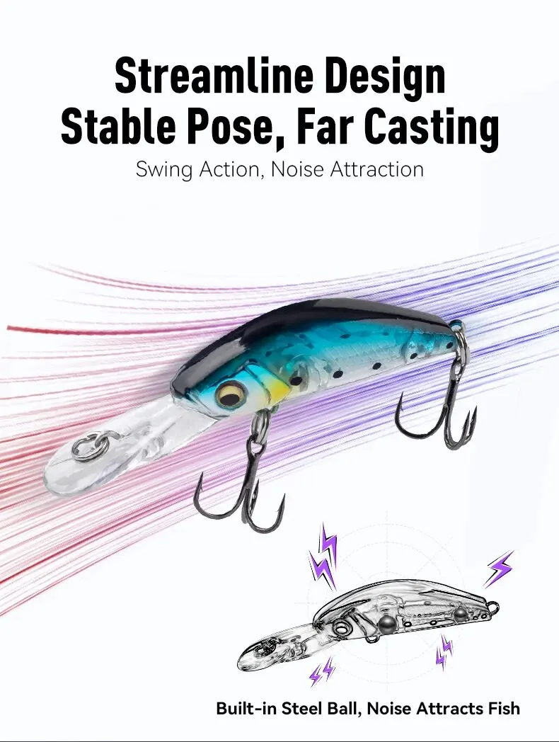Simule la forma del cuerpo del pez, colores láser realistas, ojos 3D, anzuelos afilados, captará la atención de sus peces con fuerza a primera vista.