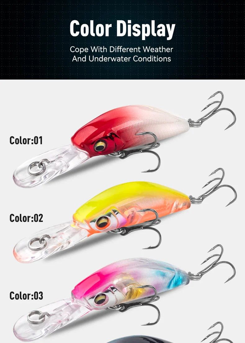 Simule la forma del cuerpo del pez, colores láser realistas, ojos 3D, anzuelos afilados, captará la atención de sus peces con fuerza a primera vista.