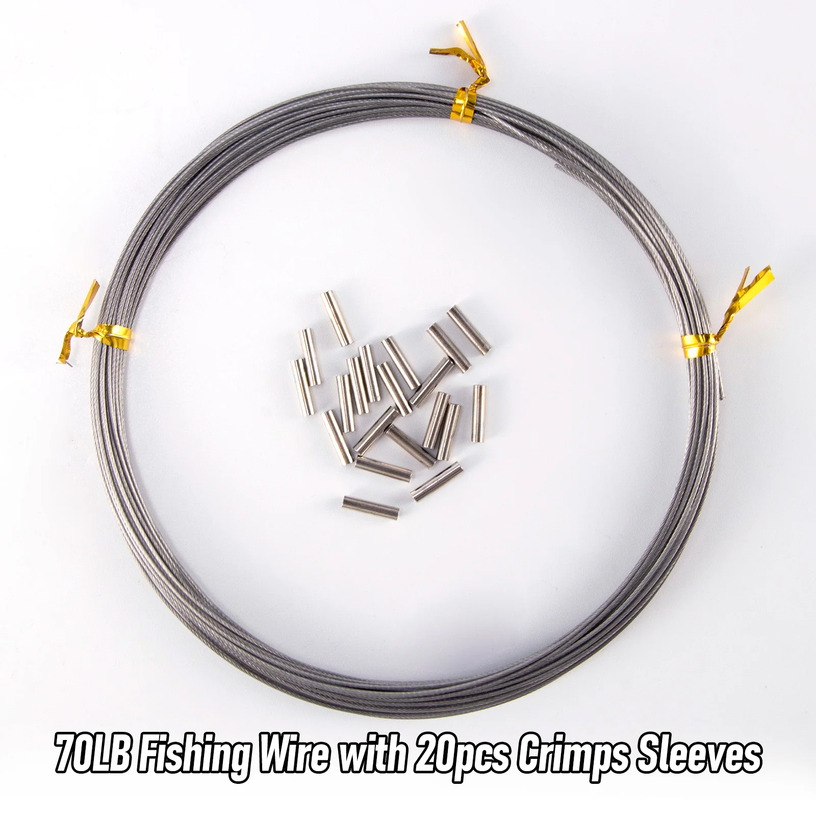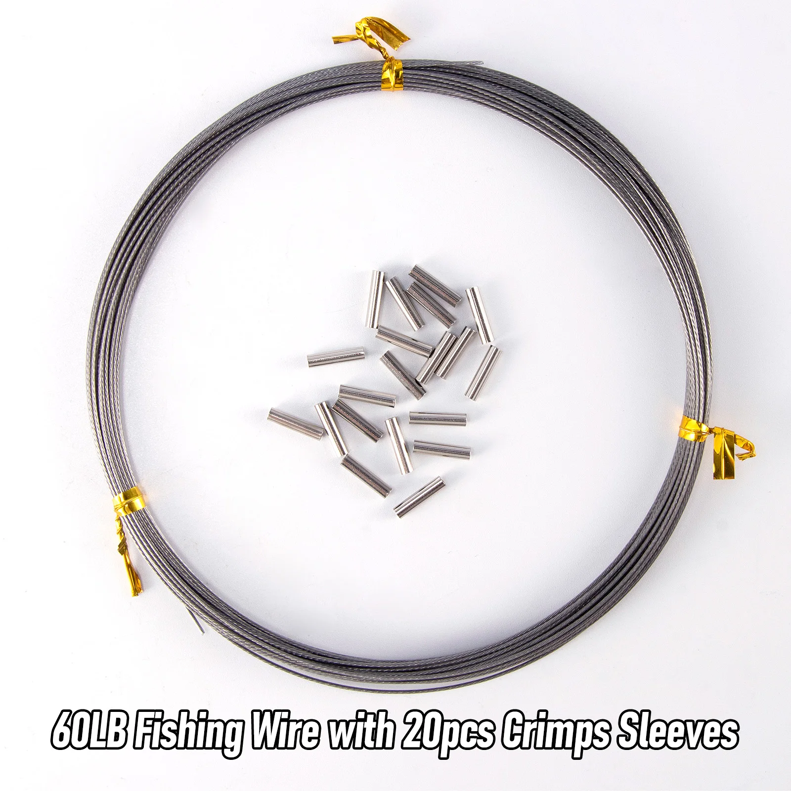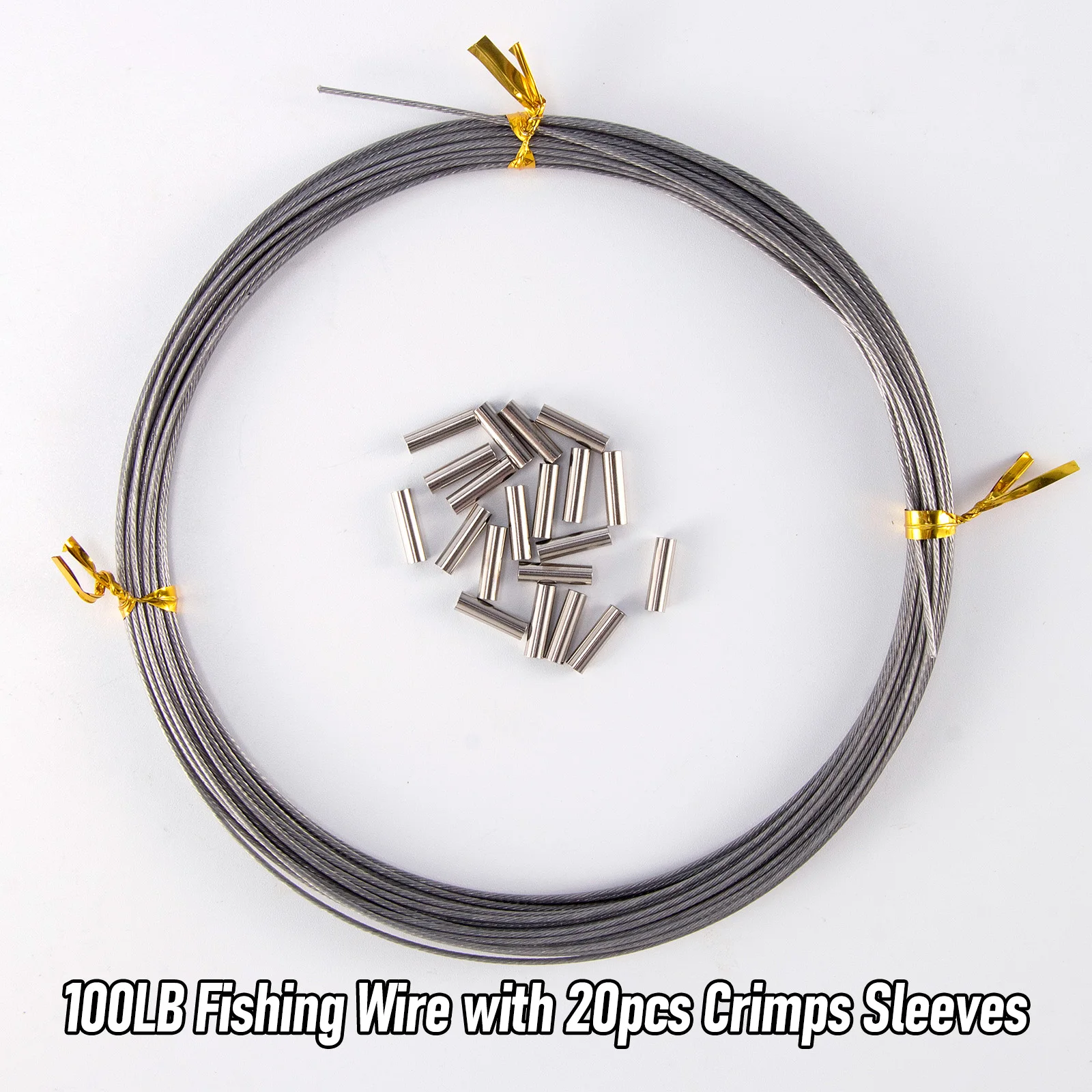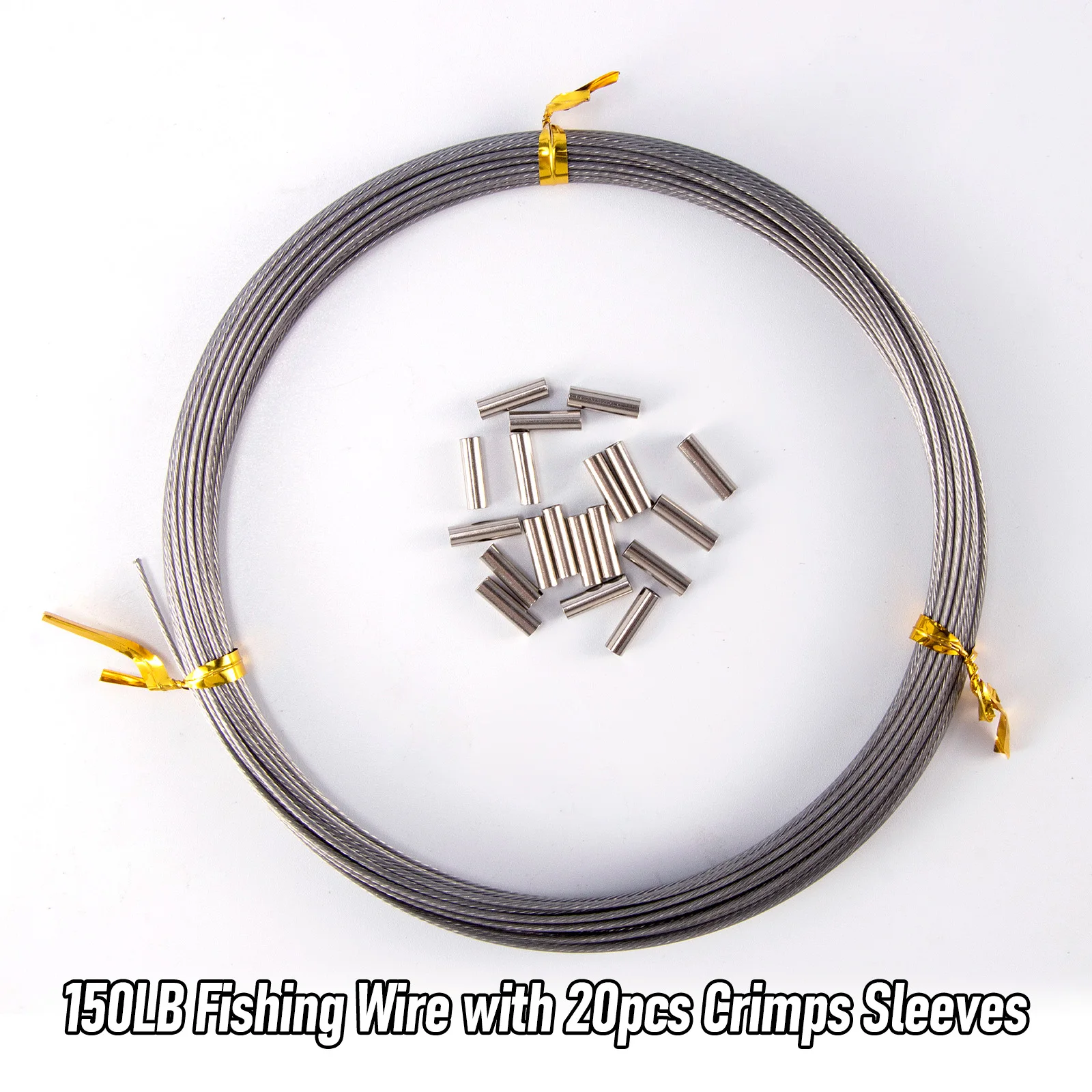 Paquete: Recibirá alambre de pesca de acero inoxidable de 8LB a 400LB con mangas individuales de 20 piezas. Longitud: 32,8 pies.