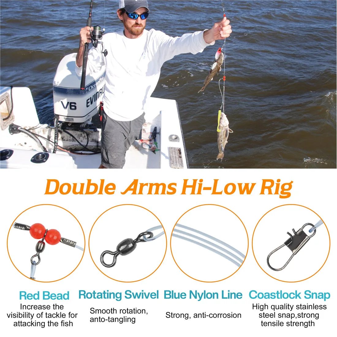 2. Los aparejos de pesca se completan con eslabones giratorios, broches y cuentas, los brazos también están equipados con eslabones giratorios, sin necesidad de preocuparse por los cables retorcidos debido a los eslabones giratorios atascados.