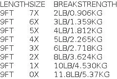 Tippet de líder de fluorocarbono Tappered de 9 pies para pesca con mosca Alta resistencia a la abrasión, alta resistencia a la rotura que el líder de nylon del mismo tamaño. Color claro, sin visibilidad en el agua. No absorbe el agua.