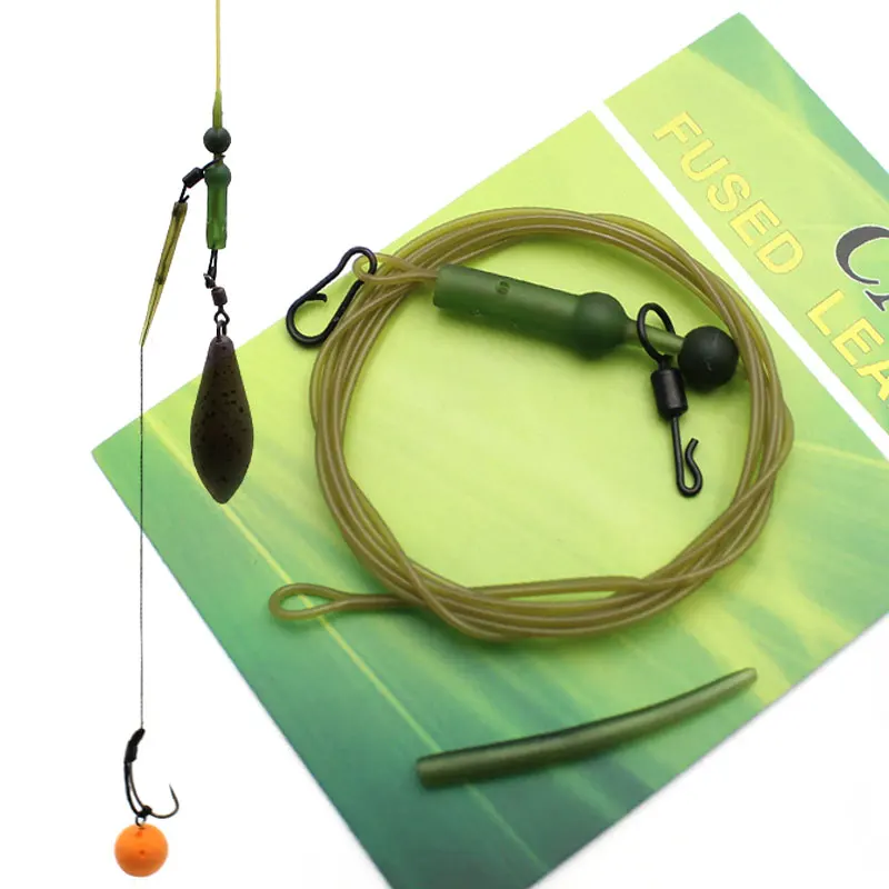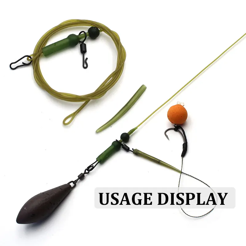 Líder de línea de pesca de carpa, cable de fluorocarbono, guía de pesca con mosca, línea principal con clip de plomo, manga antienredos giratoria de cambio rápido