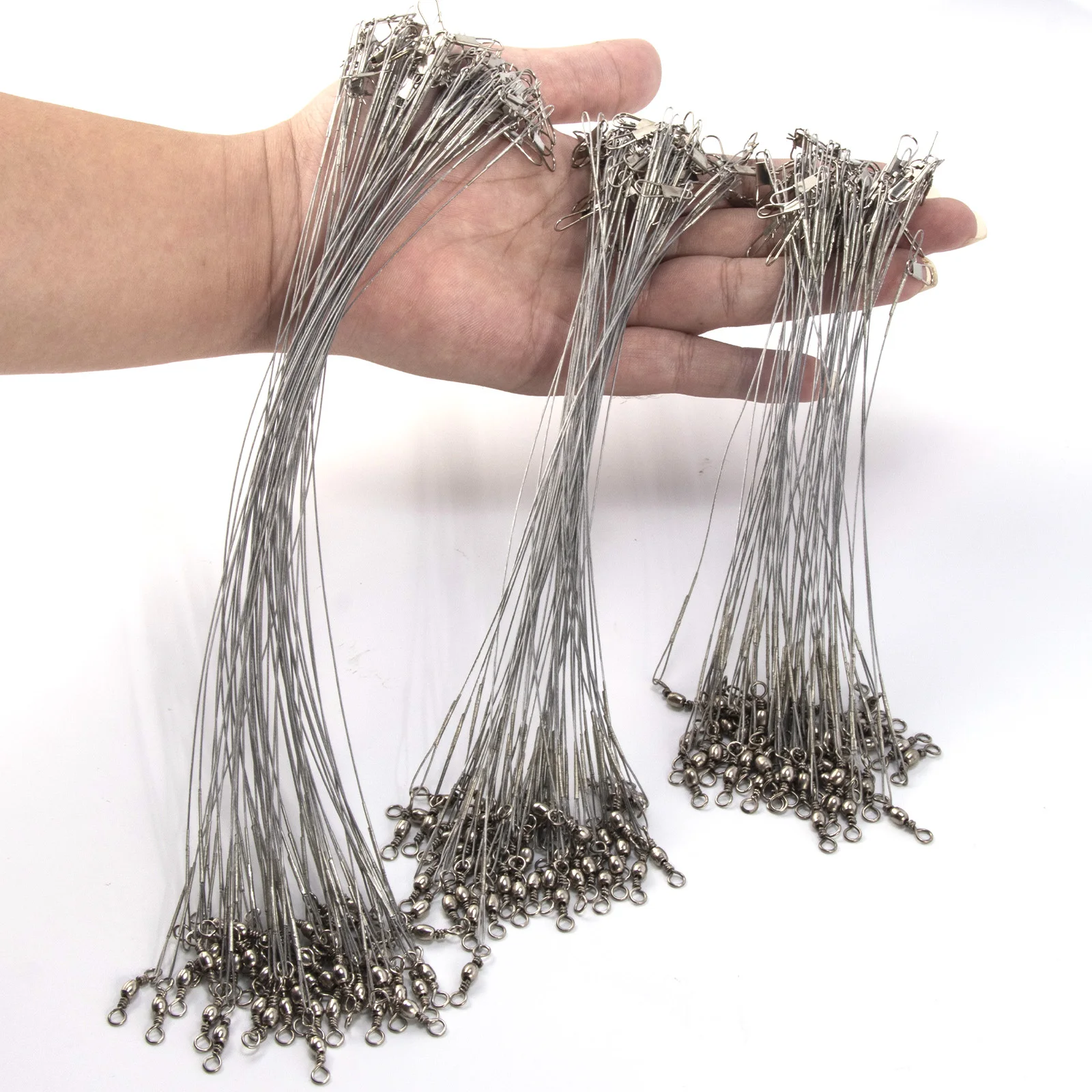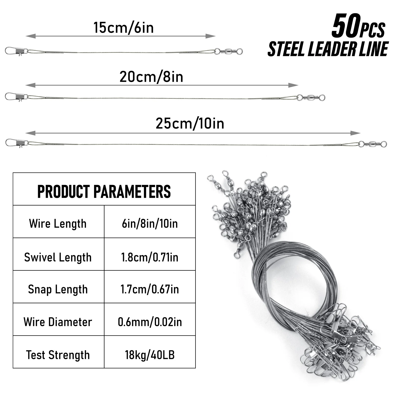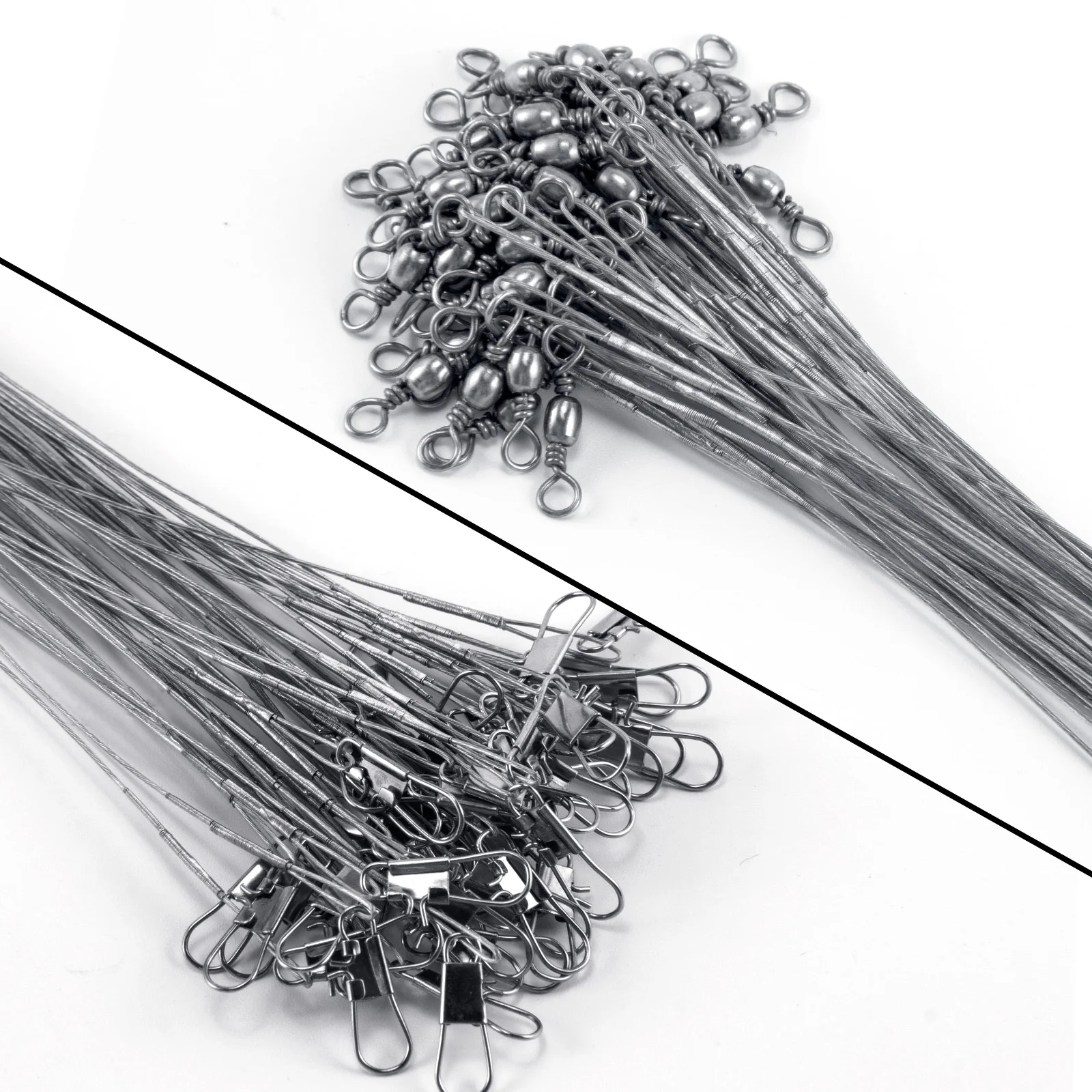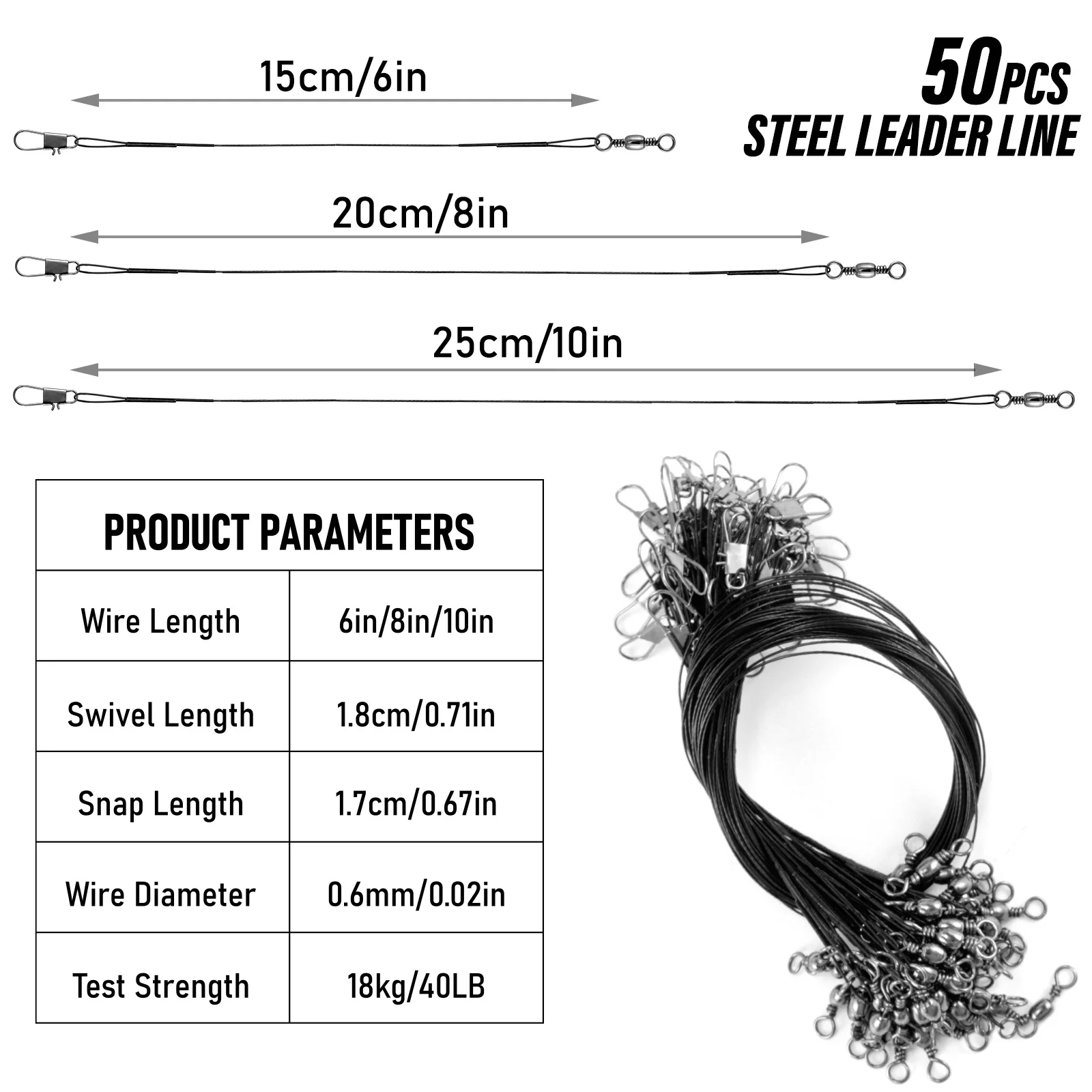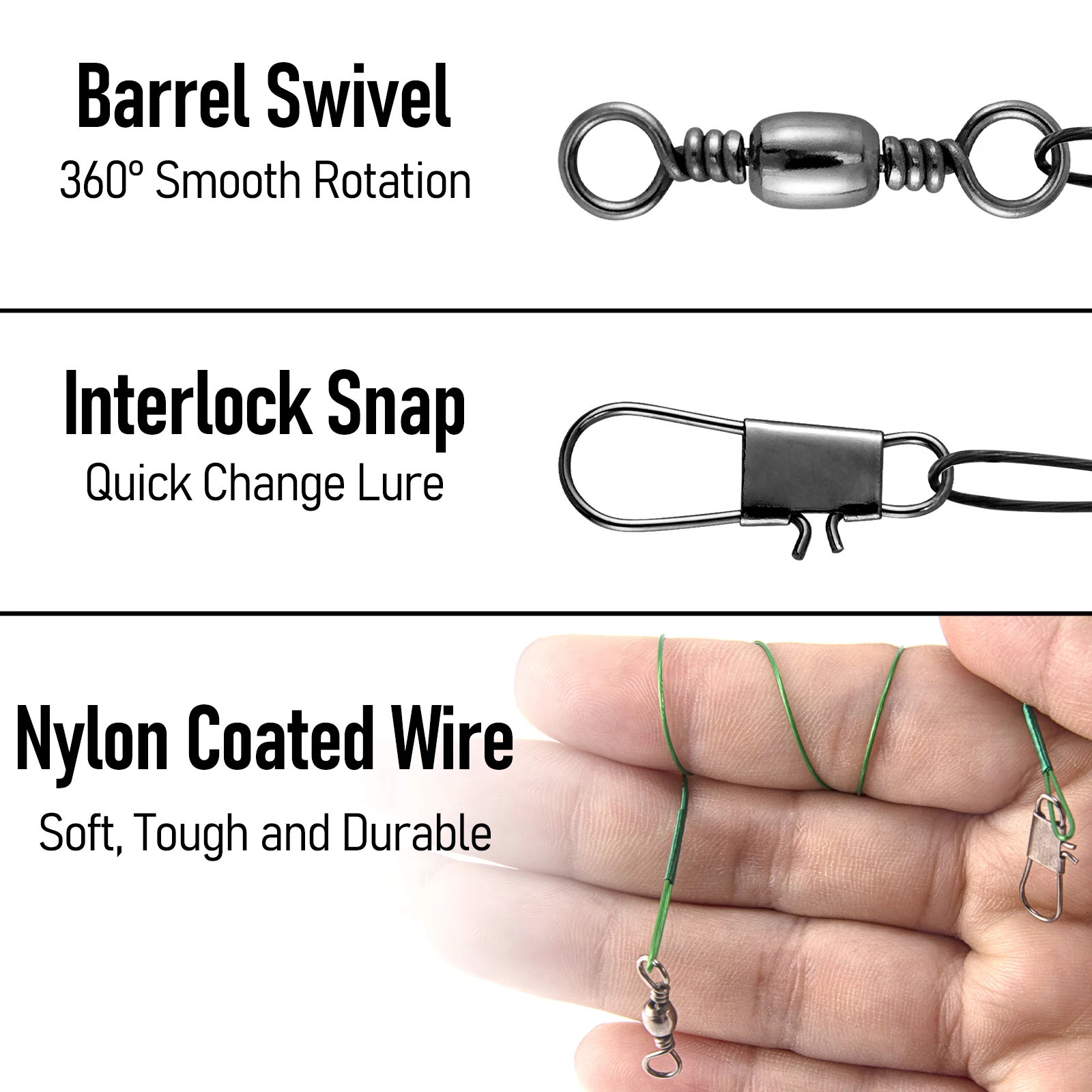 Líderes de aparejos de pesca: hechos de acero inoxidable de alta calidad y recubiertos con nailon para garantizar su dureza, resistencia a la corrosión y durabilidad. Lo suficientemente fuerte como para resistir los dientes afilados. ¡Sus peces no se perderán!