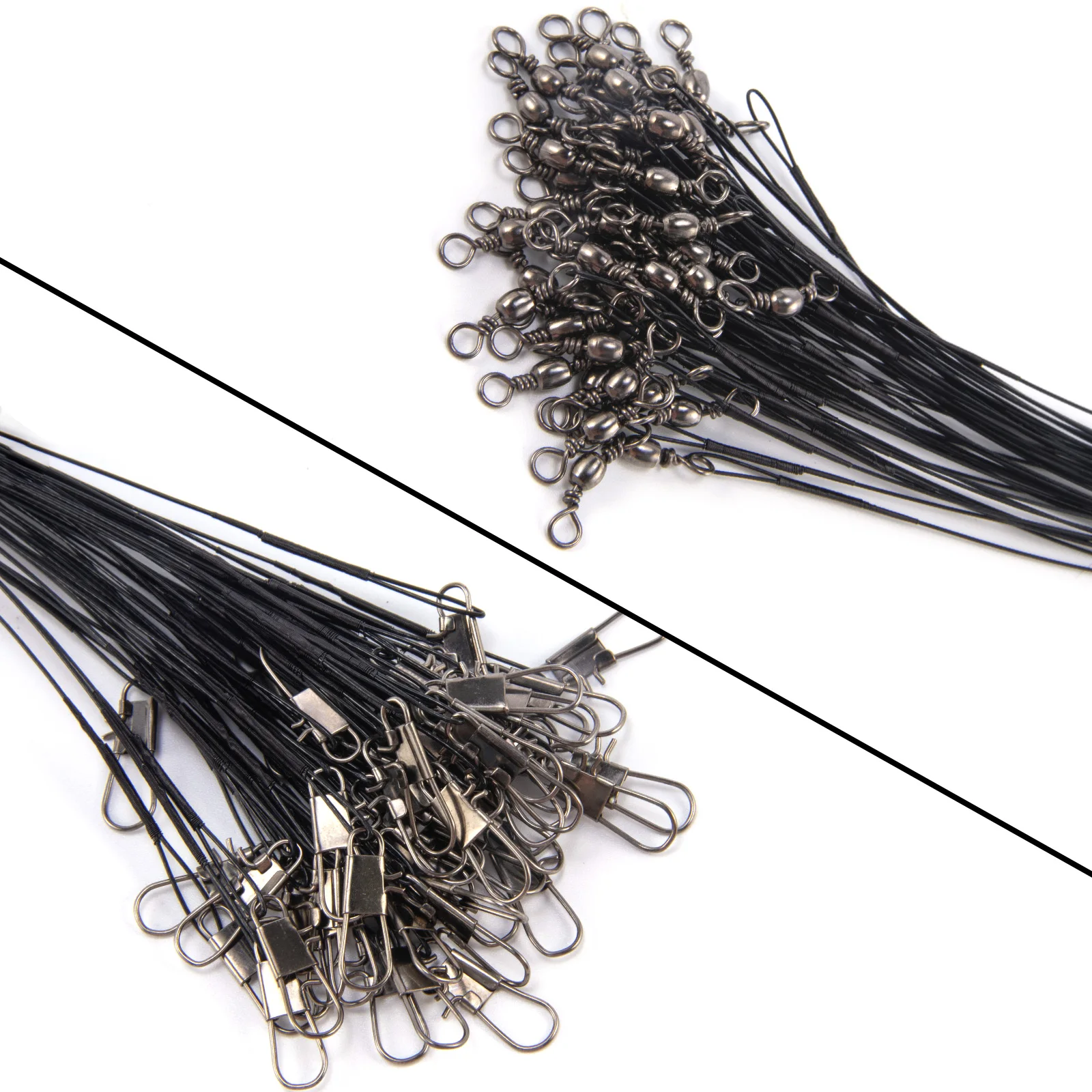 Conector de equipo de pesca perfecto: los cables de alambre de pesca están equipados con eslabones giratorios de barril niquelados negros/blancos lisos y broche de enclavamiento, que son resistentes a la corrosión y duraderos, haciendo que sea fácil conectar Señuelos de Pesca cebos aparejos anzuelos