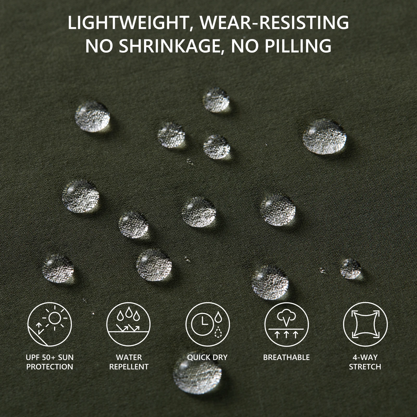 Hecho de tejido ligero, elástico en 4 direcciones y sin pelusas con UPF 50 + que protege su piel de los dañinos rayos UVA y UVB. Con características de transpirabilidad, secado rápido y resistencia al agua para mantenerte fresco y carne todo el día