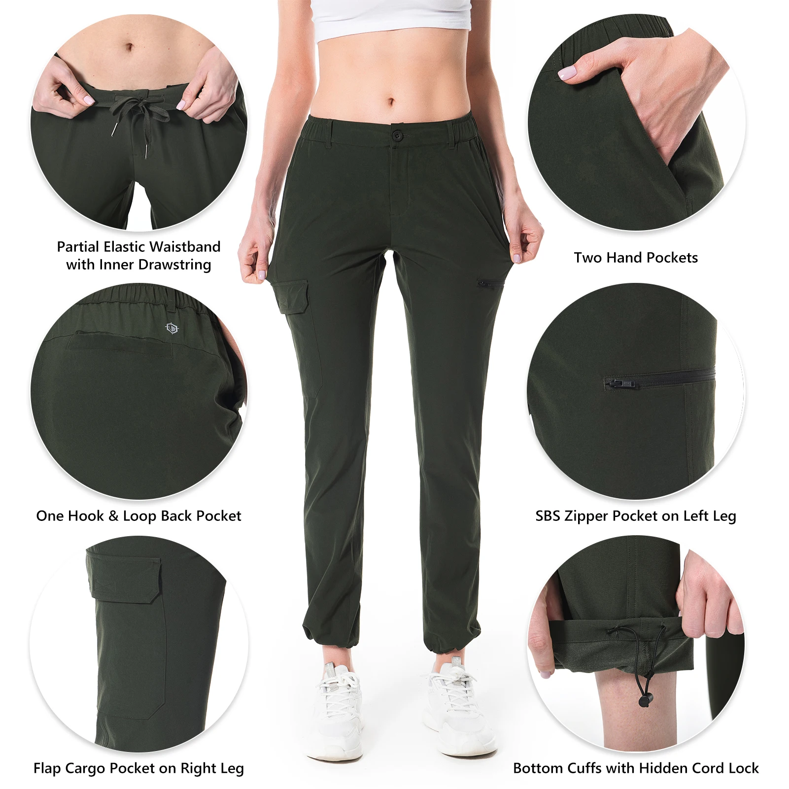 5 bolsillos funcionales que te ayudan a ir más lejos: 2 bolsillos para las manos, 1 bolsillo cargo con solapa y 1 bolsillo con cremallera en el muslo, 1 bolsillo trasero con cierre de velcro: los múltiples bolsillos ofrecen un almacenamiento seguro para su teléfono, BILLETERA, llaves, etc.