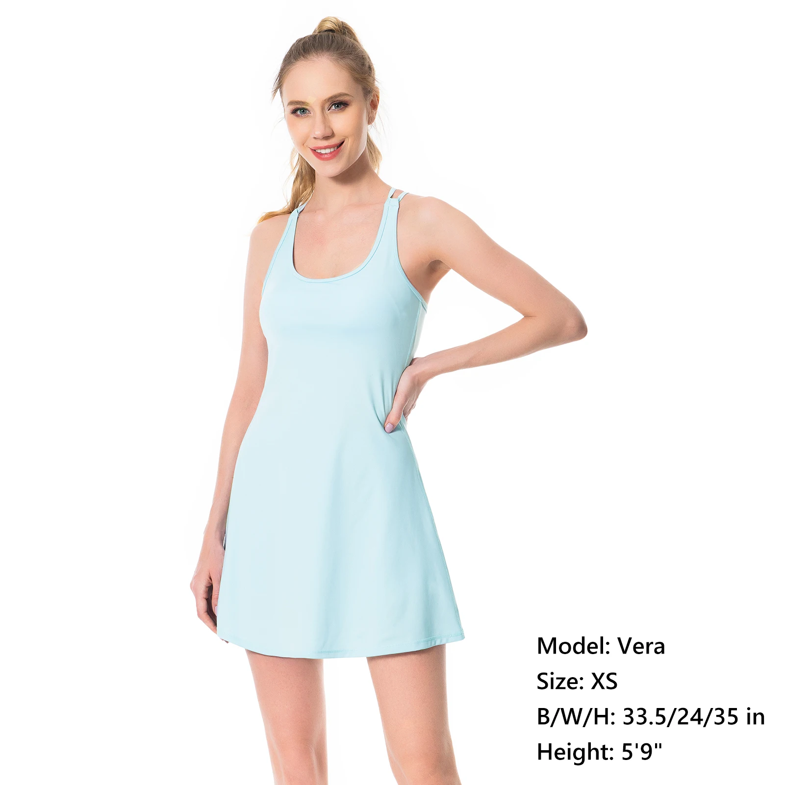 With adjustable shoulder/back straps for a customized fit; Slim fit upper body and an A-line shape at the bottom which effectively hides belly fat as well as creates added comfort - this dress can do wonders for your confidence in both sports activities and daily life