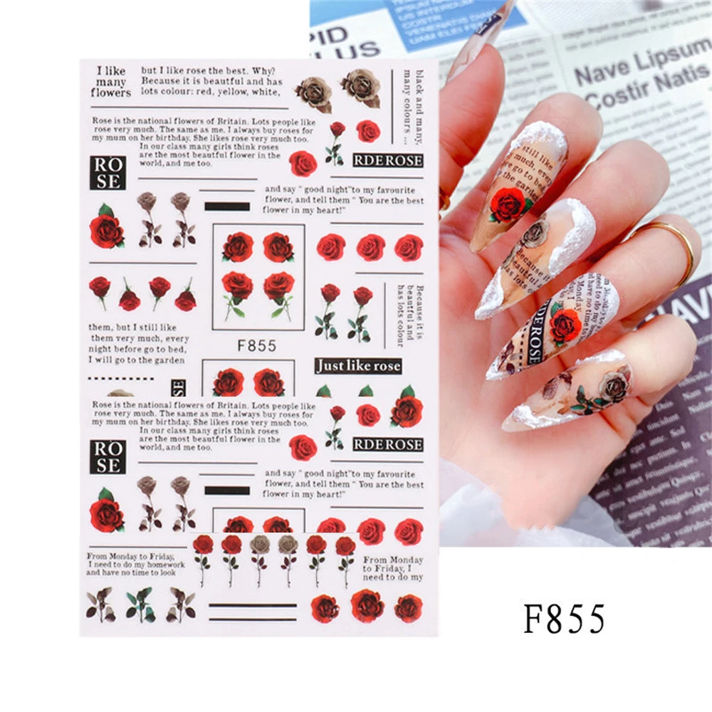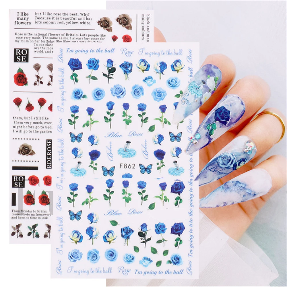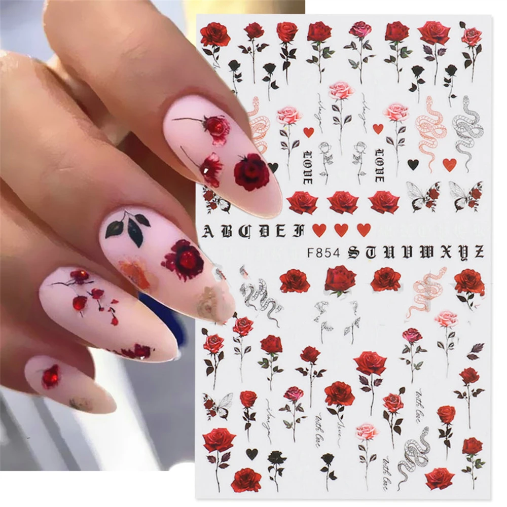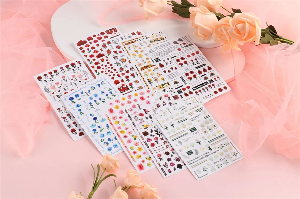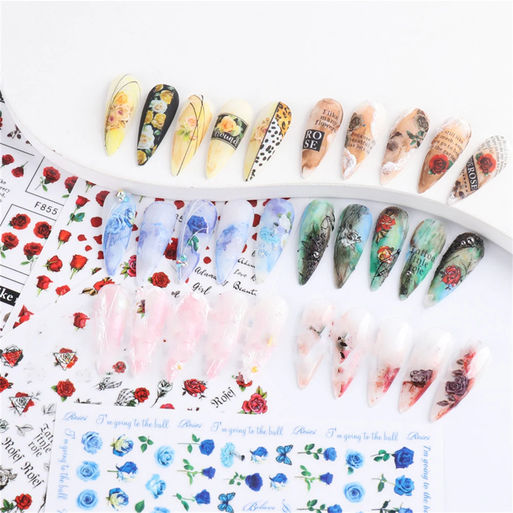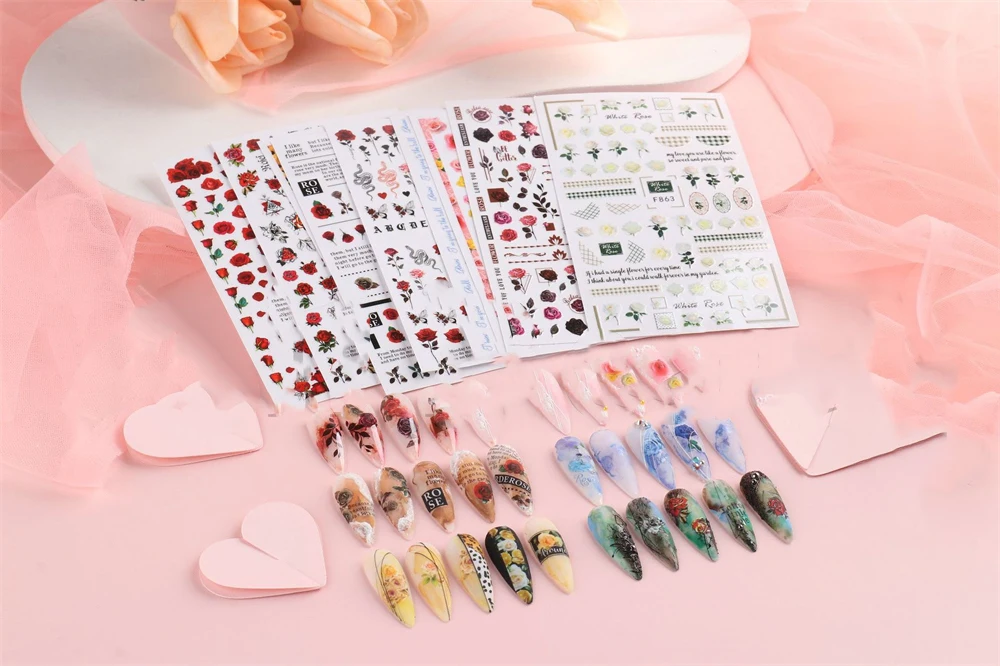 4. Calcomanías de Arte de uñas de San Valentín de la serie de rosas coloridas, perfectas para uñas o puntas de uñas. También puede usarlos para decorar su hogar, funda de teléfono móvil, gafas, tarjetas hechas, arte corporal, etc.