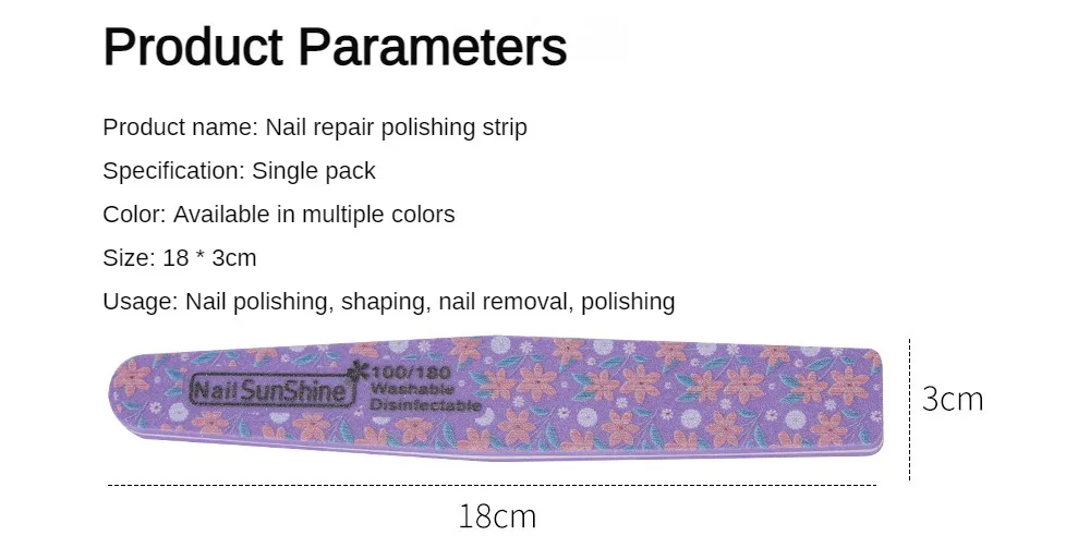 2. Uso lateral, primero pulir el adhesivo de esmalte de uñas y las líneas cóncavas y convexas con una superficie de arena gruesa, y luego pulir la superficie de la uña con una superficie de arena fina para lograr la forma de uña deseada