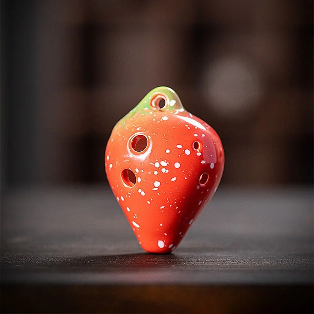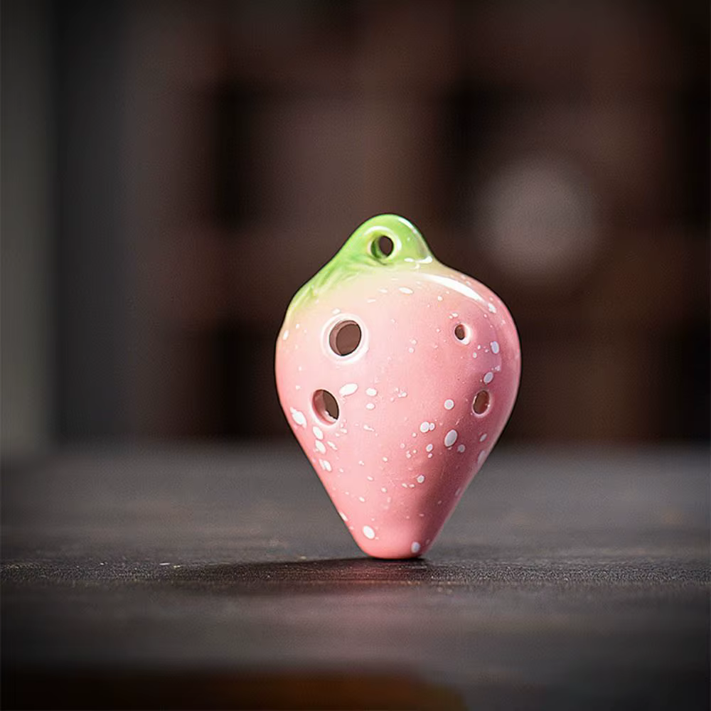 - The ocarina is designed into the strawberry appearance, which is adorable and creative.