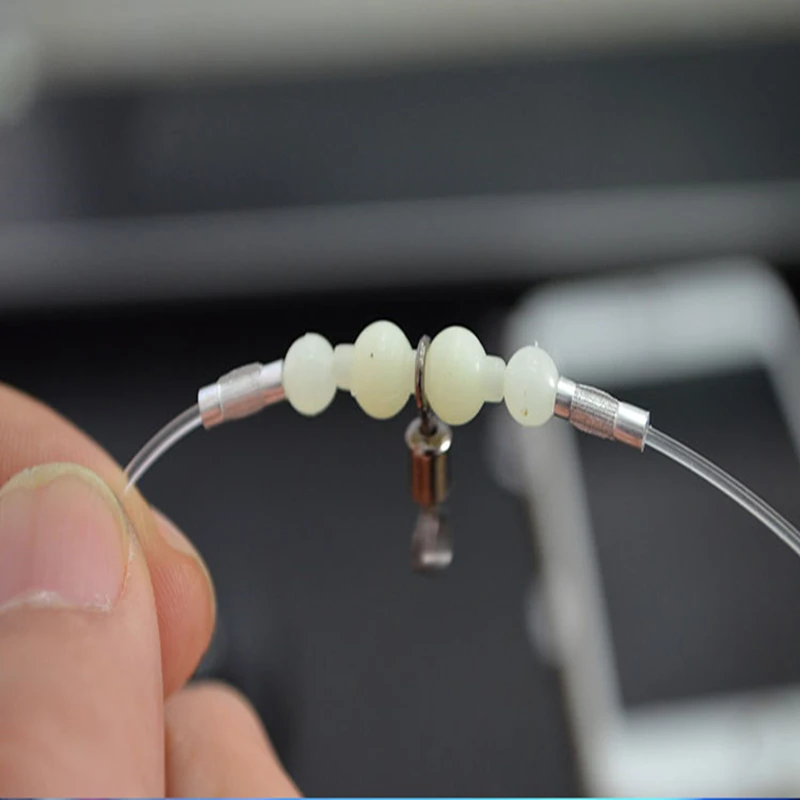 1. Este juego de roscas está hecho de hilo de nailon de 1mm de diámetro, hecho de acero inoxidable giratorio, cuentas de bloqueo luminosas y pasadores fuertes
