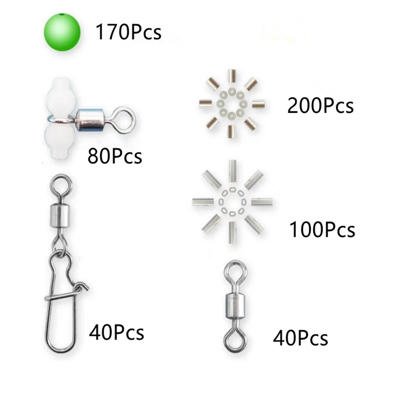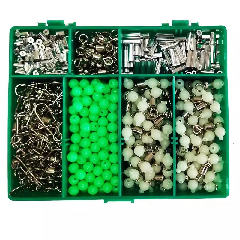 Juego de línea de equilibrio de pesca de barco de pesca en el mar, Conector de línea de aparejos de pesca giratorios, cuentas luminosas nocturnas, alfileres, tubos, conector rodante, línea giratoria de pesca, aparejos de peces de mar