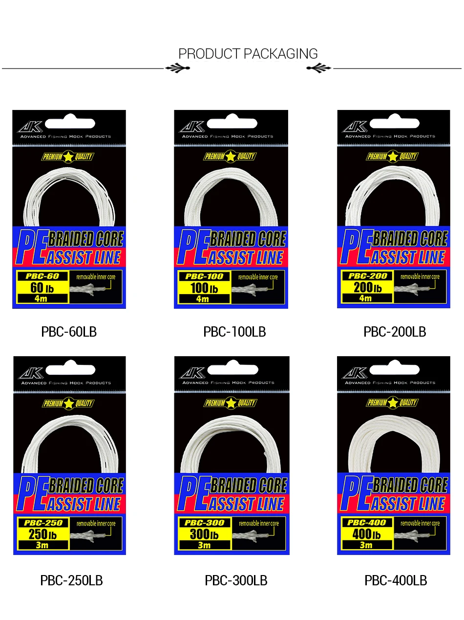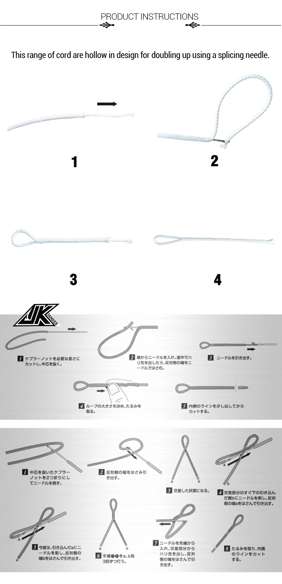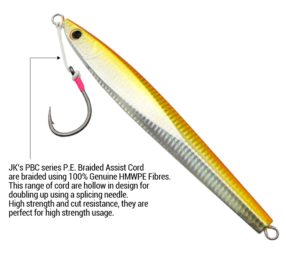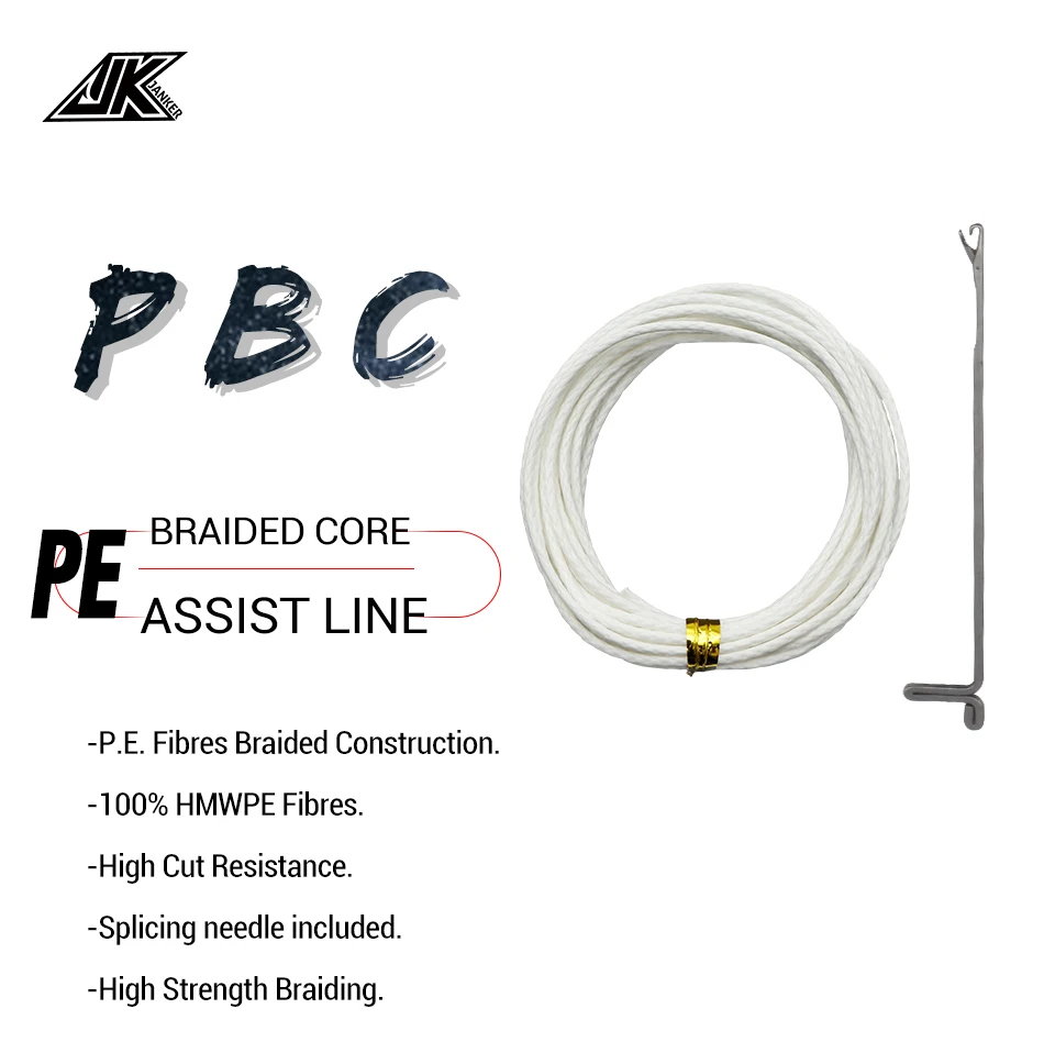 JK's PBC serie P.E. El Cable de asistencia trenzado está trenzado con fibras HMWPE 100% genuinas. Esta gama de cordón tiene un diseño hueco para doblar usando una aguja de empalme.