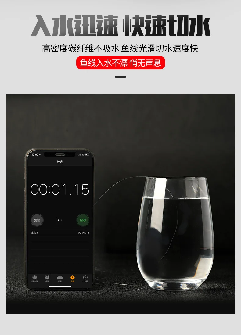 Línea de carbono superresistente, 50m, 100m, transparente, potente, baja ductividad, resistente al desgaste, suave, más lejos, sin adherencia, corte rápido de agua