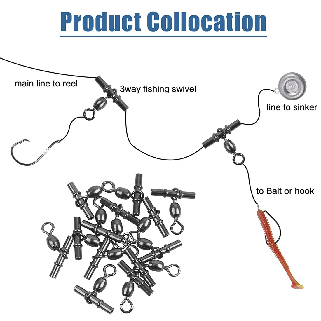 2. Los eslabones giratorios de pesca de tres vías se pueden conectar rápidamente, poste, grupo de pesca de roca, Sedal, señuelos, etc. Puede usarlo para hacer cualquier aparejo de servicio pesado o aparejos de aguas profundas para la pesca de agua dulce o salada.
