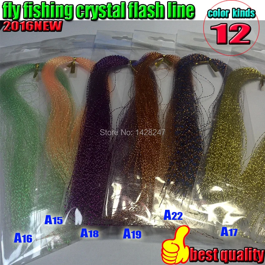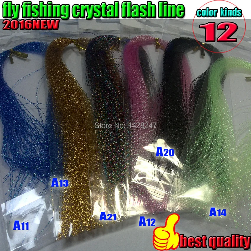 Línea flash de cristal para pesca con mosca, línea de pesca de 12 colores, línea de señuelo, material de atado para pesca con mosca, 12 bolsas/lote de longitud de 30CM