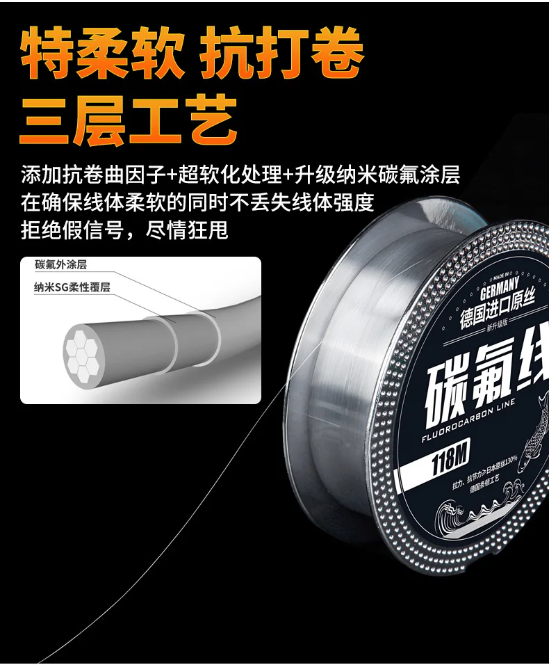 Línea de fluorocarbono Super suave fuerte línea de pesca principal sublínea línea de pesca de nailon monofilamento de Alemania