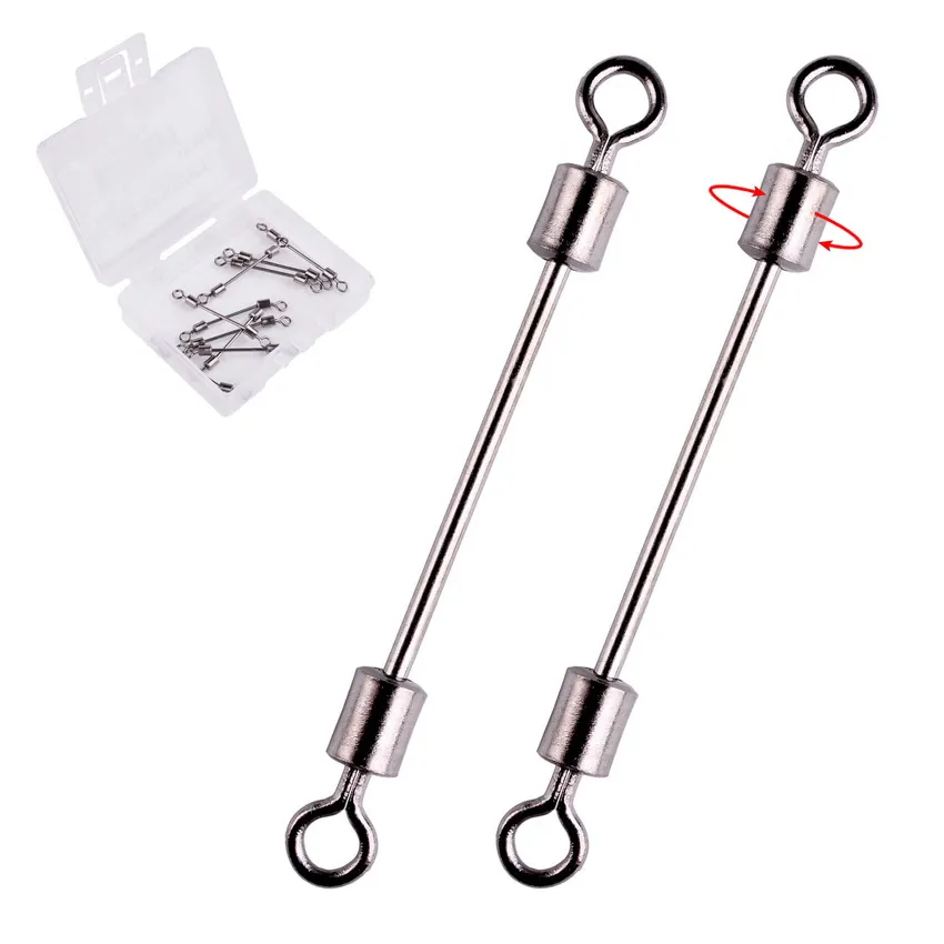 Los giratorios de pesca son una de las piezas más comunes del equipo de pesca. Se utilizan para evitar que la línea de pesca se retuerza, que es una de las principales causas de que la línea de pesca se enrede o se debilite. Los eslabones giratorios también se utilizan para unir dos piezas de sedal, o para unir un líder a un sedal, etc.