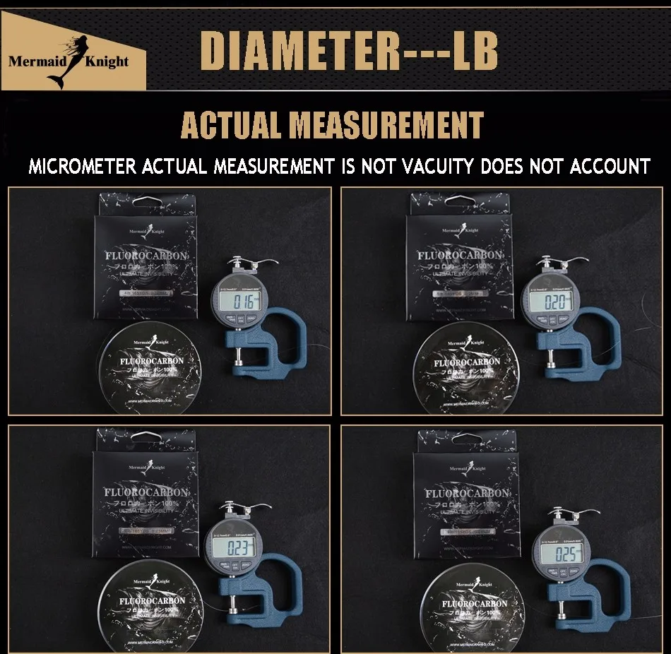 -Los diámetros de los sedales de fluorocarbono son menores que los sedales de MermaidKnight Copolymer u otros sedales de monofilamento, lo que resulta en un sedal más pequeño y fuerte que le da más capacidad de carrete y mayor profundidad con cebos de buceo.