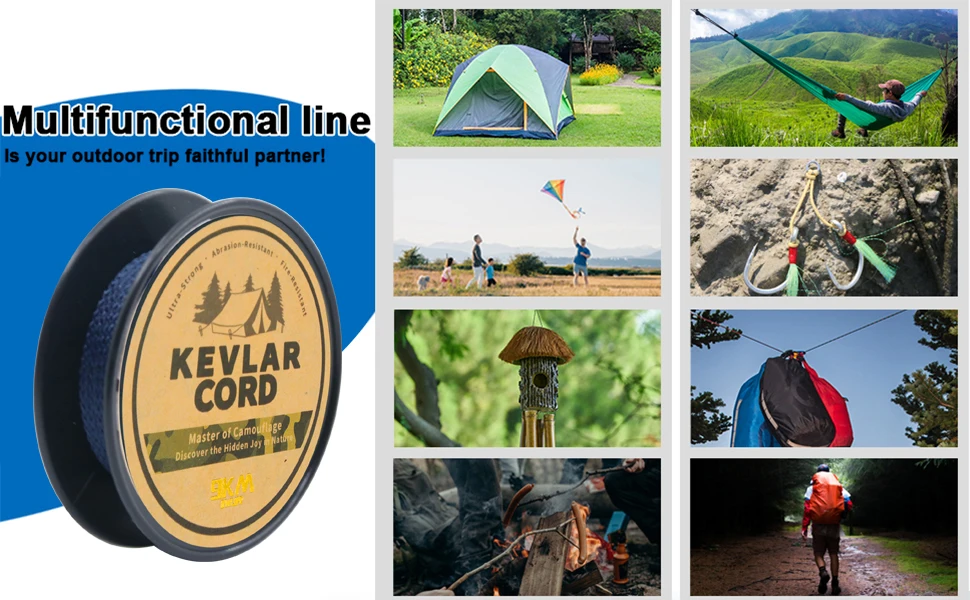 A diferencia del paracord o el nailon, nuestra línea trenzada de Kevlar resiste el deshilachado, los bordes afilados y las superficies rugosas, lo que garantiza una fiabilidad duradera en la naturaleza.