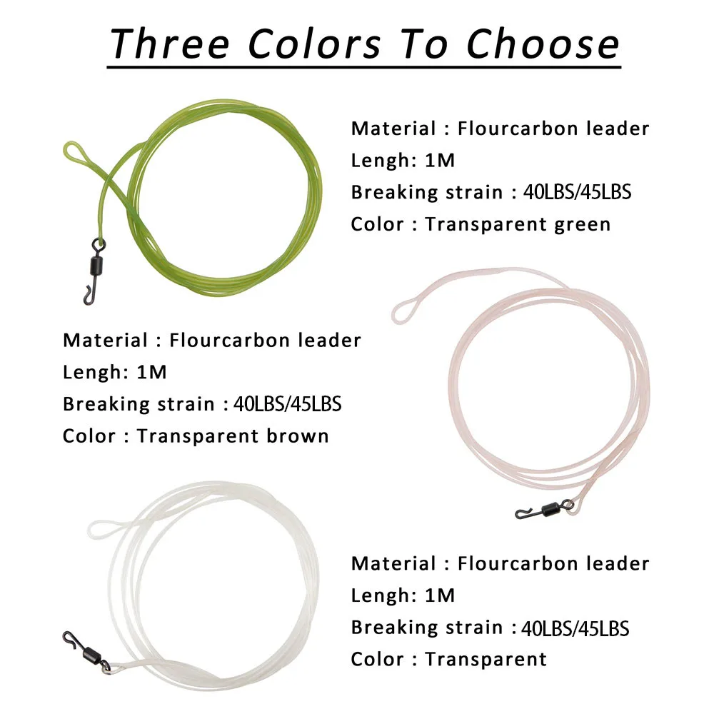 Línea líder de pesca de carpa 1M 40LB Línea de fluorocarbono con líder de alambre giratorio de cambio rápido para líder de pesca