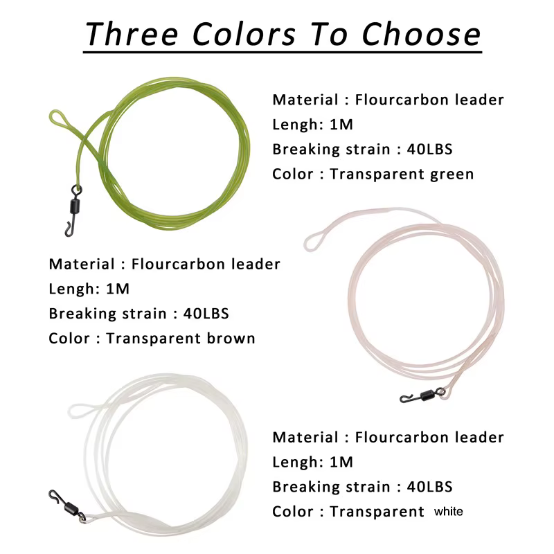 Cero en calidad. No haga el pedido, la bucle se rompe al pasar por un clip de plomo o pescar con el nudo de la línea. Además, se vuelve completamente blanco después de unas horas en el agua.