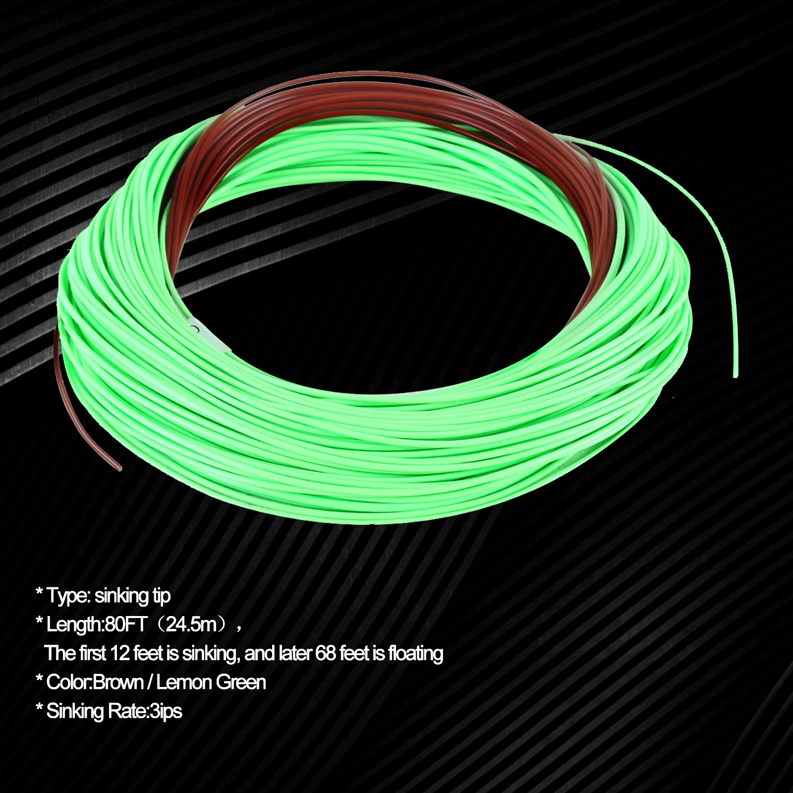 1.Peso diseñado hacia adelante2.Longitud: 80 pies3.Peso de la línea: 4-8WT4.Color: marrón/verde limón5.Flotante con punta hundida6. Relación de hundimiento: 3 ip/s