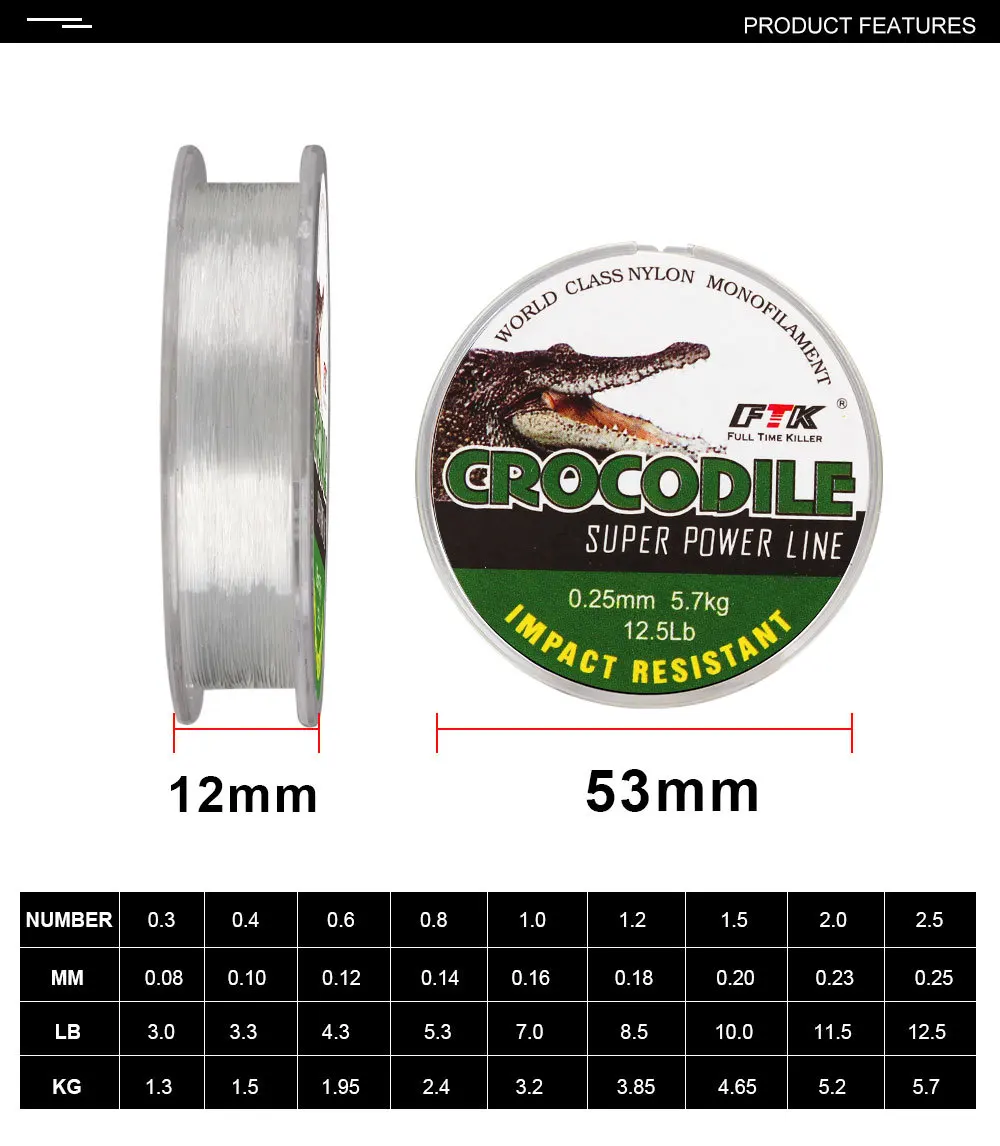 Línea de nailon para pesca en hielo FTK, 0,08 MM-0,25 MM, 2,9-12,5 LB, 1,3 kg-5,7 kg, línea líder de marca fuerte, línea de pesca transparente, accesorios de Peche