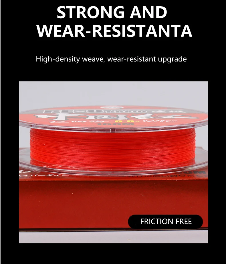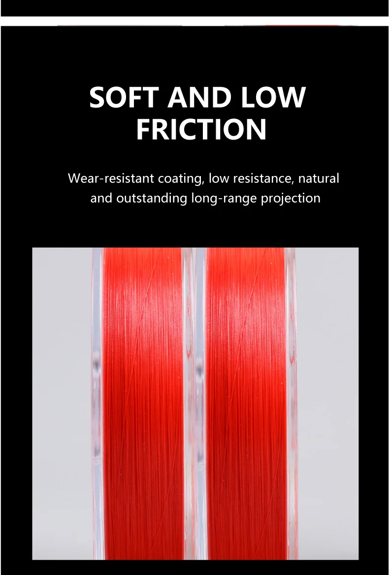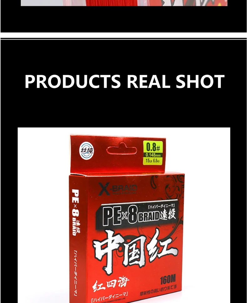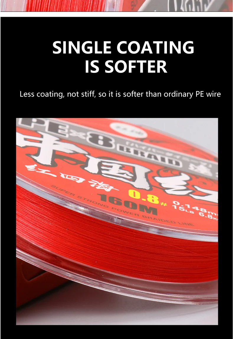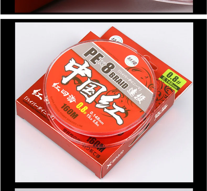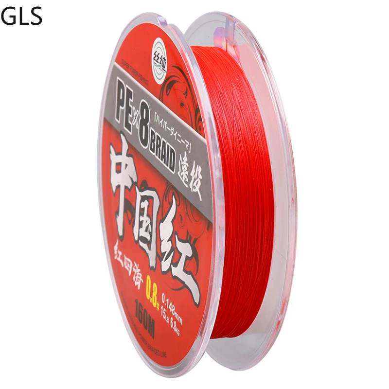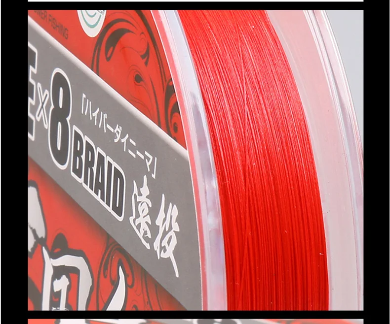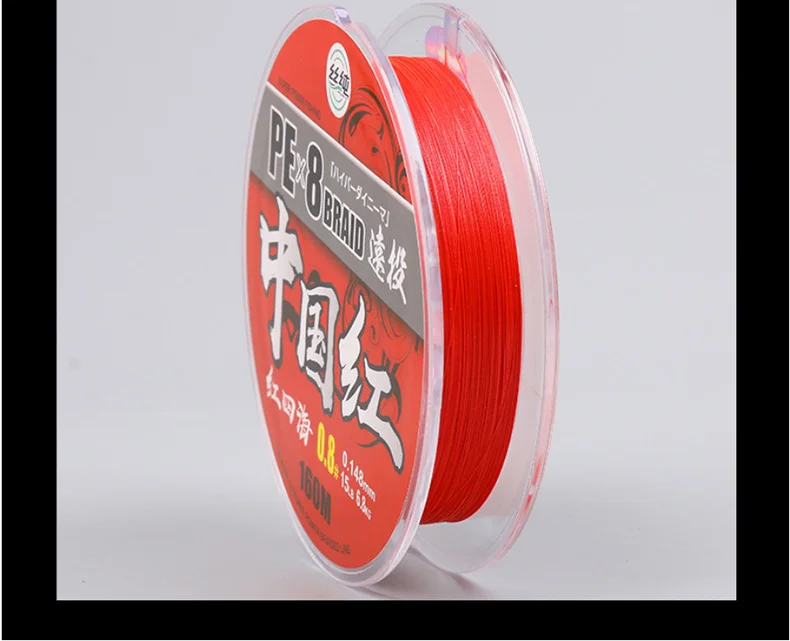 Línea de PE de 8 hebras, 2023 M/100M, China, línea trenzada roja sin decoloración, línea de pesca multifilamento de carpa, 150
