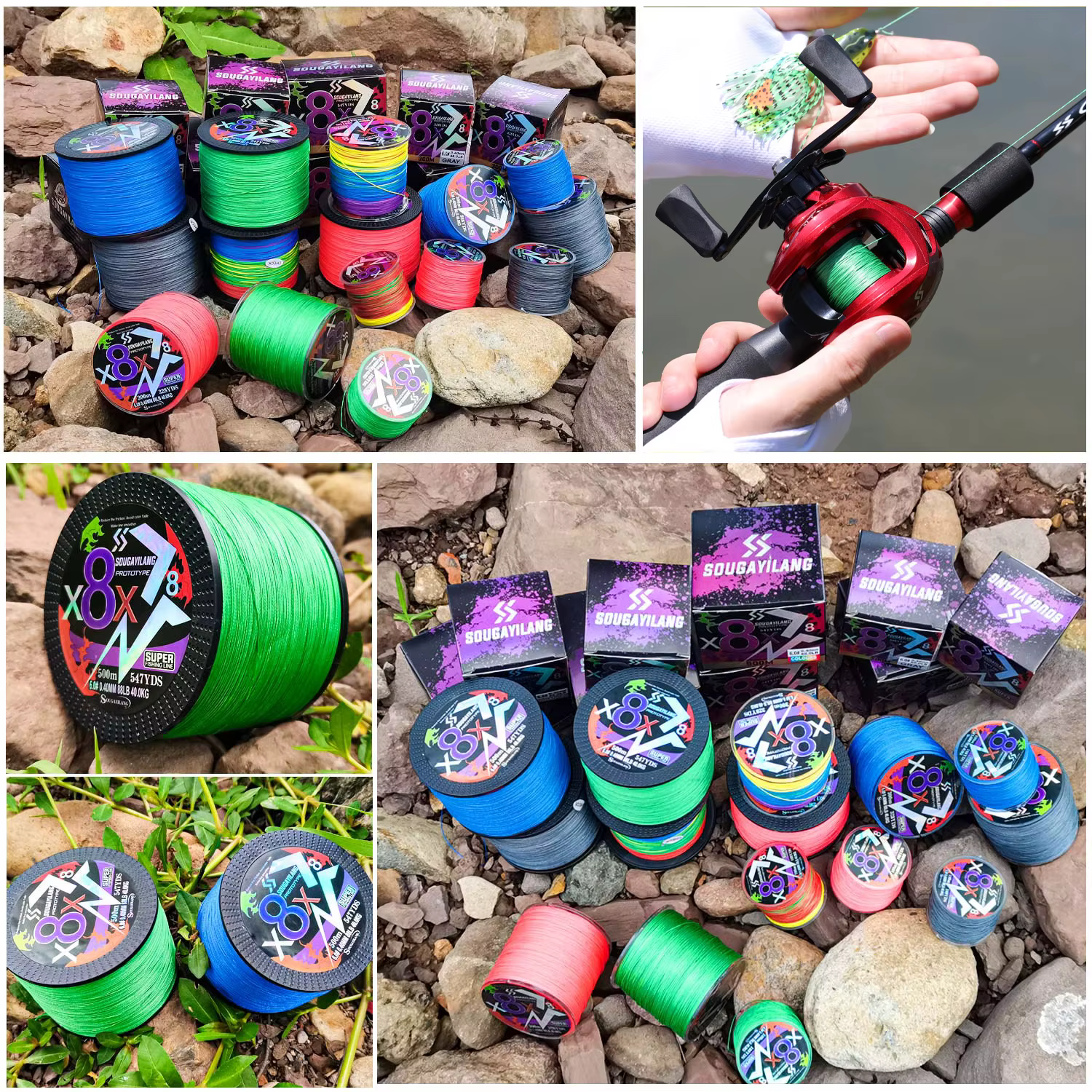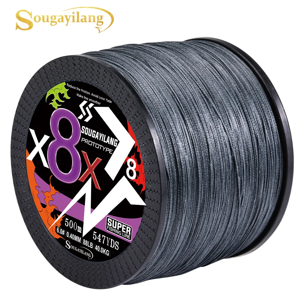 Línea de PE trenzada serie Sougayilang X8, 4 hebras, 300m, 500m, línea de pesca suave, pesca de carpa de agua dulce de lubina cruciana