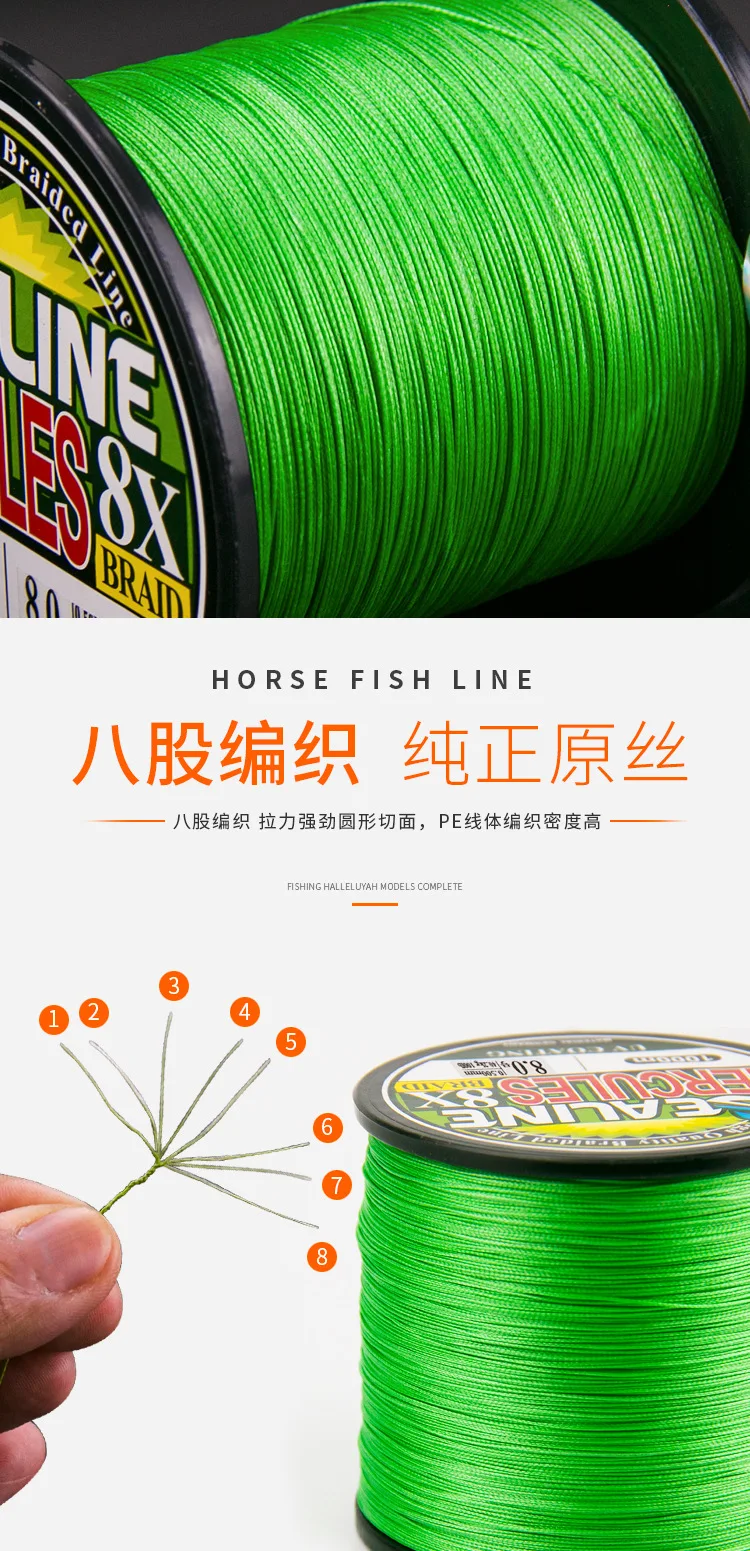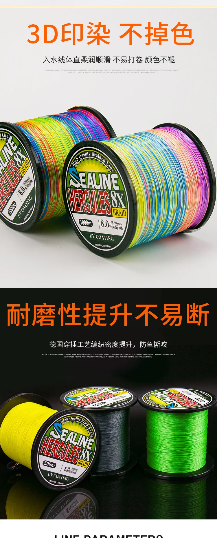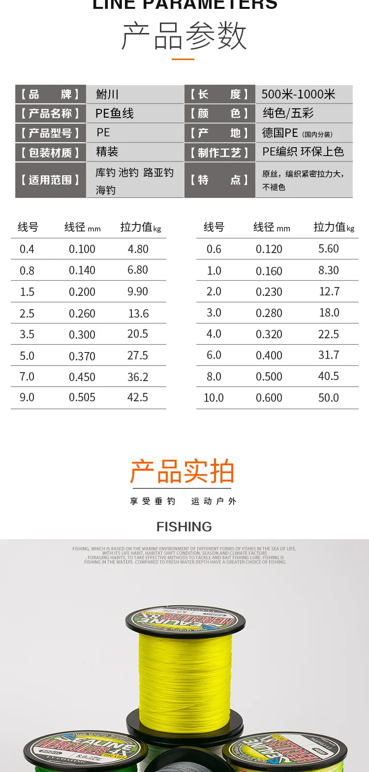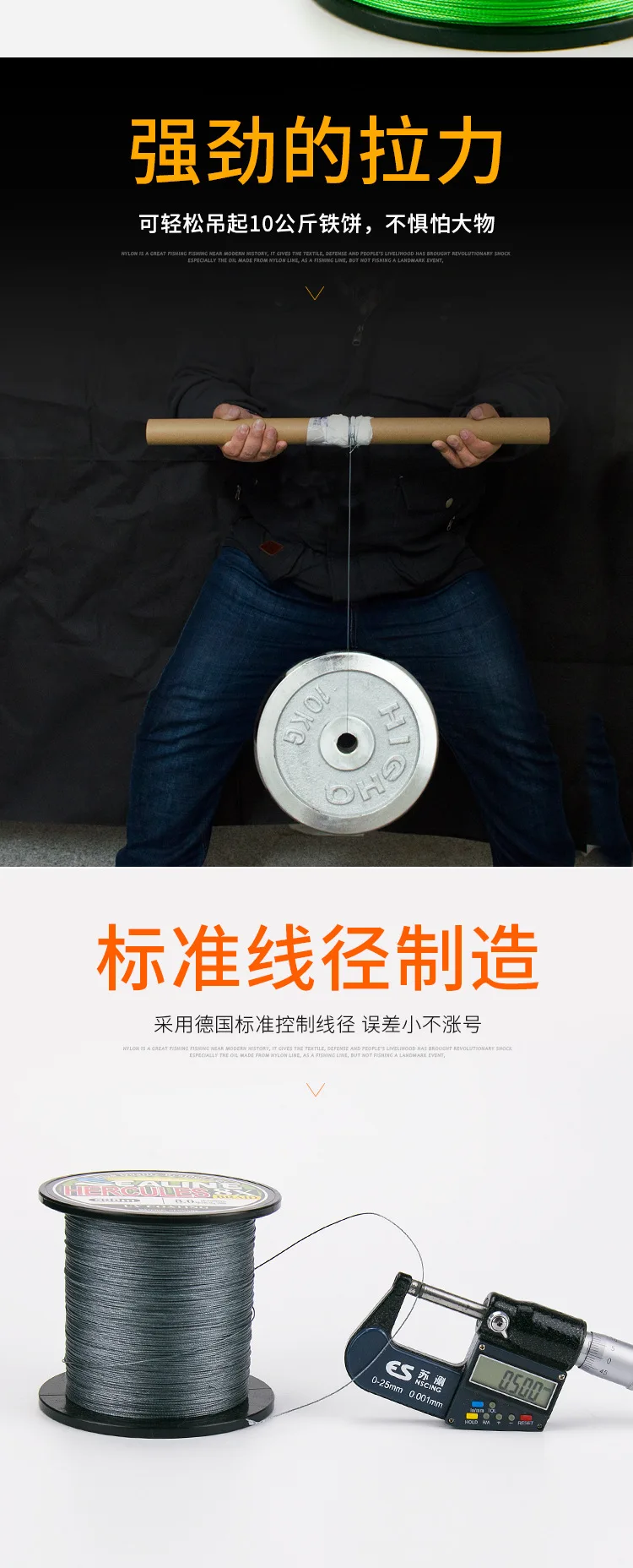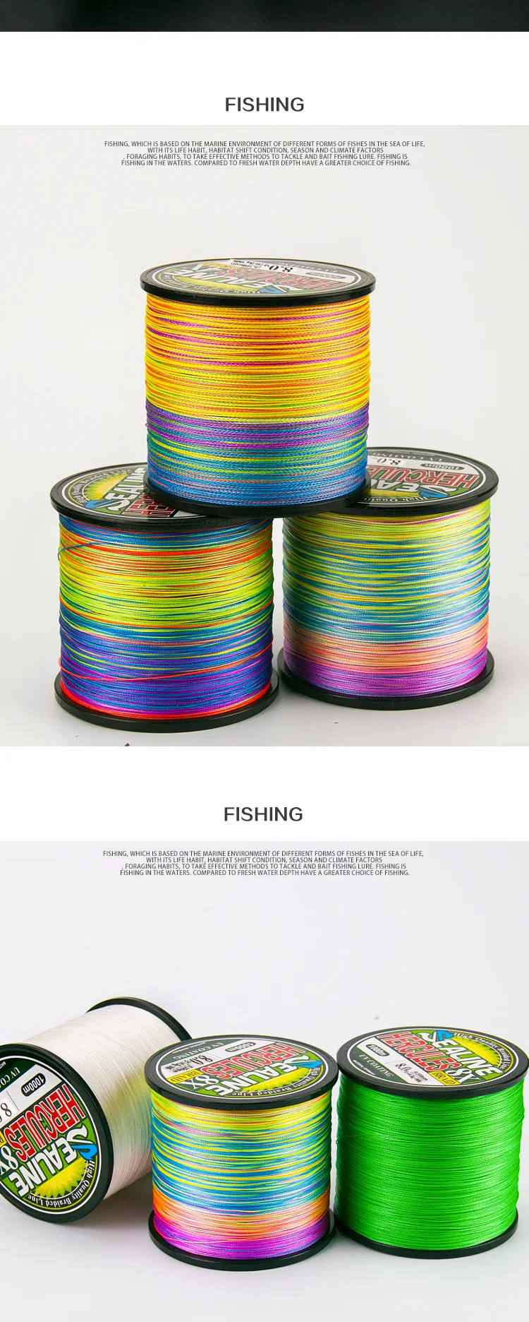 Línea de pesca de 4 hebras, hilo de PE trenzado, 300 metros de largo, 10 metros de color, profundidad del agua, 4 hebras