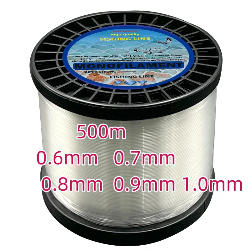 Línea de pesca de gran tamaño de 0,6/0,7/0,8/1,0mm, 500m, 100m, monofilamento, pesca en el mar, línea de pesca de nailon, herramientas de pesca gruesas