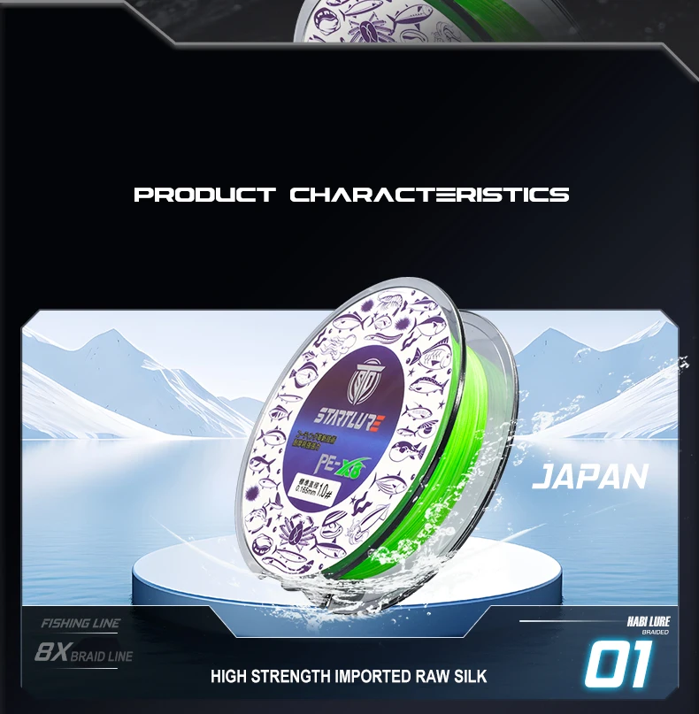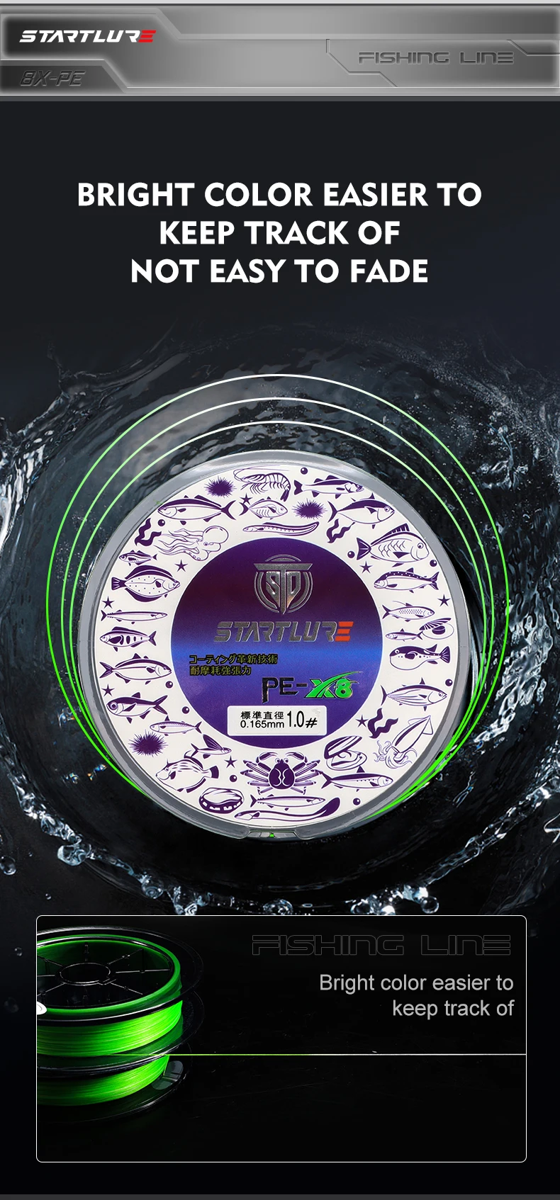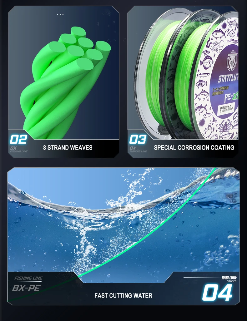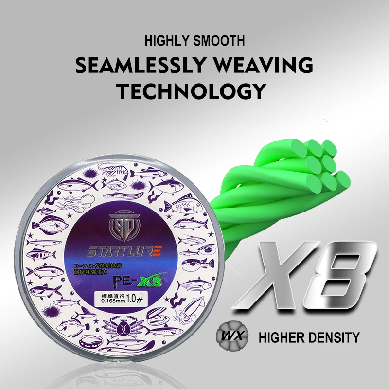 Línea de pesca de 8 hebras, tecnología avanzada de gran angular, línea trenzada de PE, pesca en agua dulce y salada