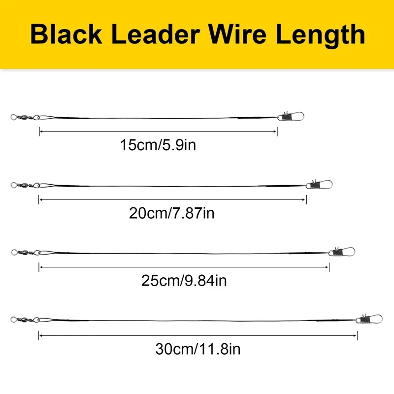2) Líder de equipo de pesca perfecto, resistente a la corrosión, duradero y lo suficientemente resistente para peces con dientes afilados, con giratorio y clip, es fácil de conectar el señuelo de pesca, el cebo de pesca, los anzuelos de pesca y el juego de pesas.Ideal para usar tanto en agua salada como en agua dulce.