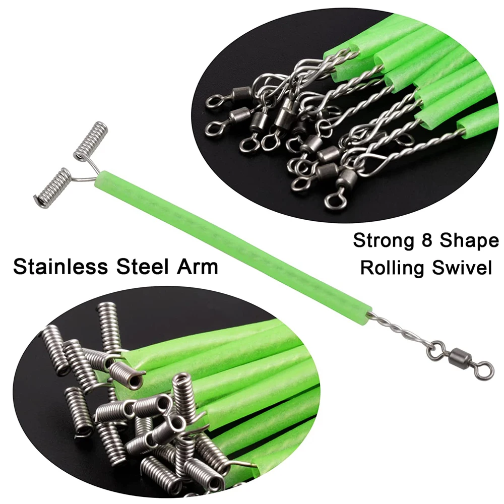 3. Los brazos de acero inoxidable mantienen los ganchos alejados del líder. Girar en caso de fuerza también puede ser una rotación flexible, no daña la línea de pesca y anti bobinado.