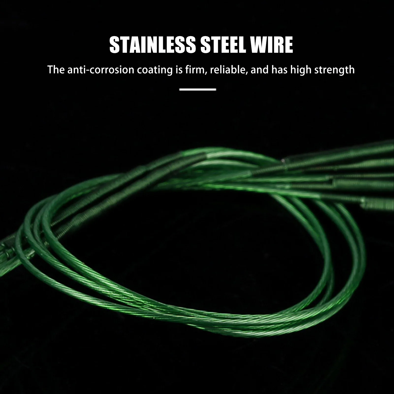 Fuerte y confiable: nuestro cable de pesca está hecho de alambre de acero de alta resistencia, lo que proporciona un rendimiento confiable y garantiza que pueda pescar incluso el pez más grande con confianza.