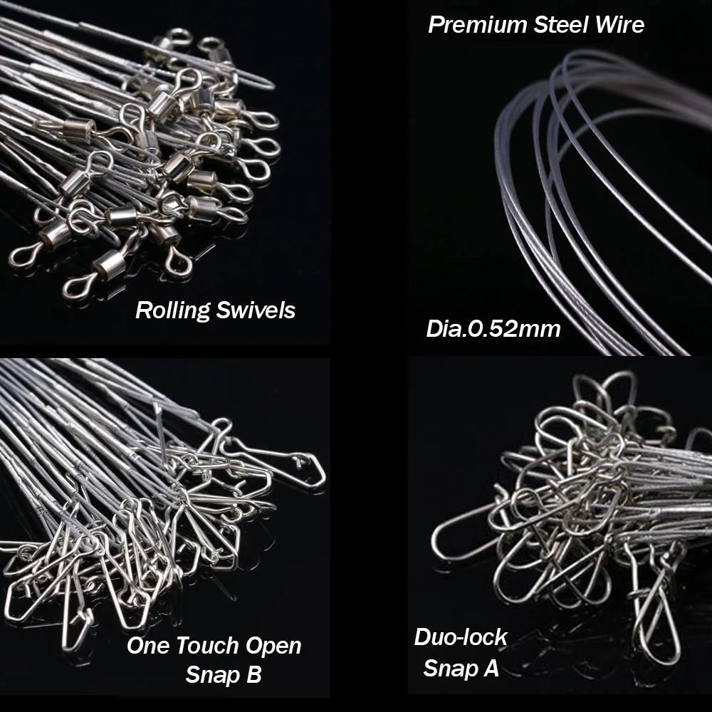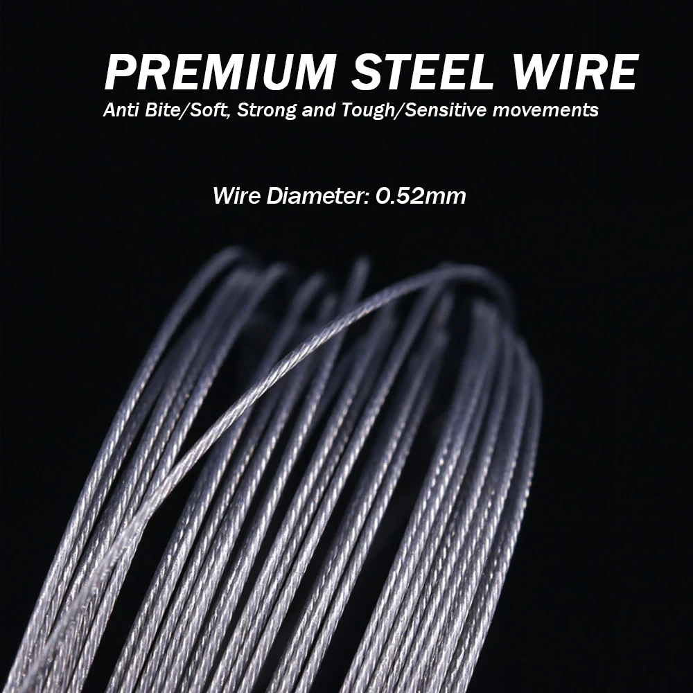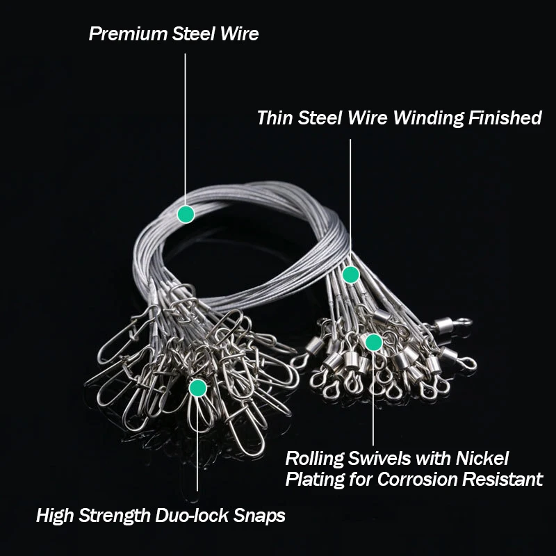 Los líderes de pesca de acero son ideales para lucio, bagre, trucha, tipo de pez, rayas, lubina, garra de águila y lucio norte.