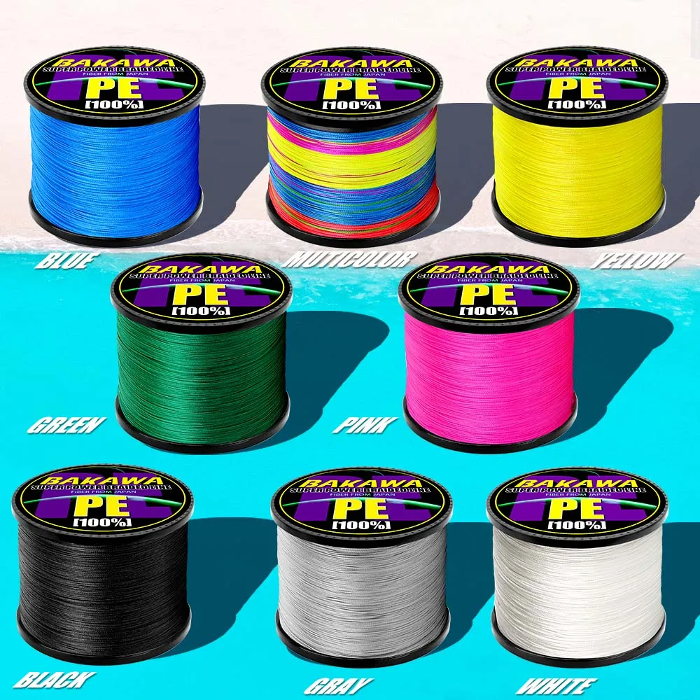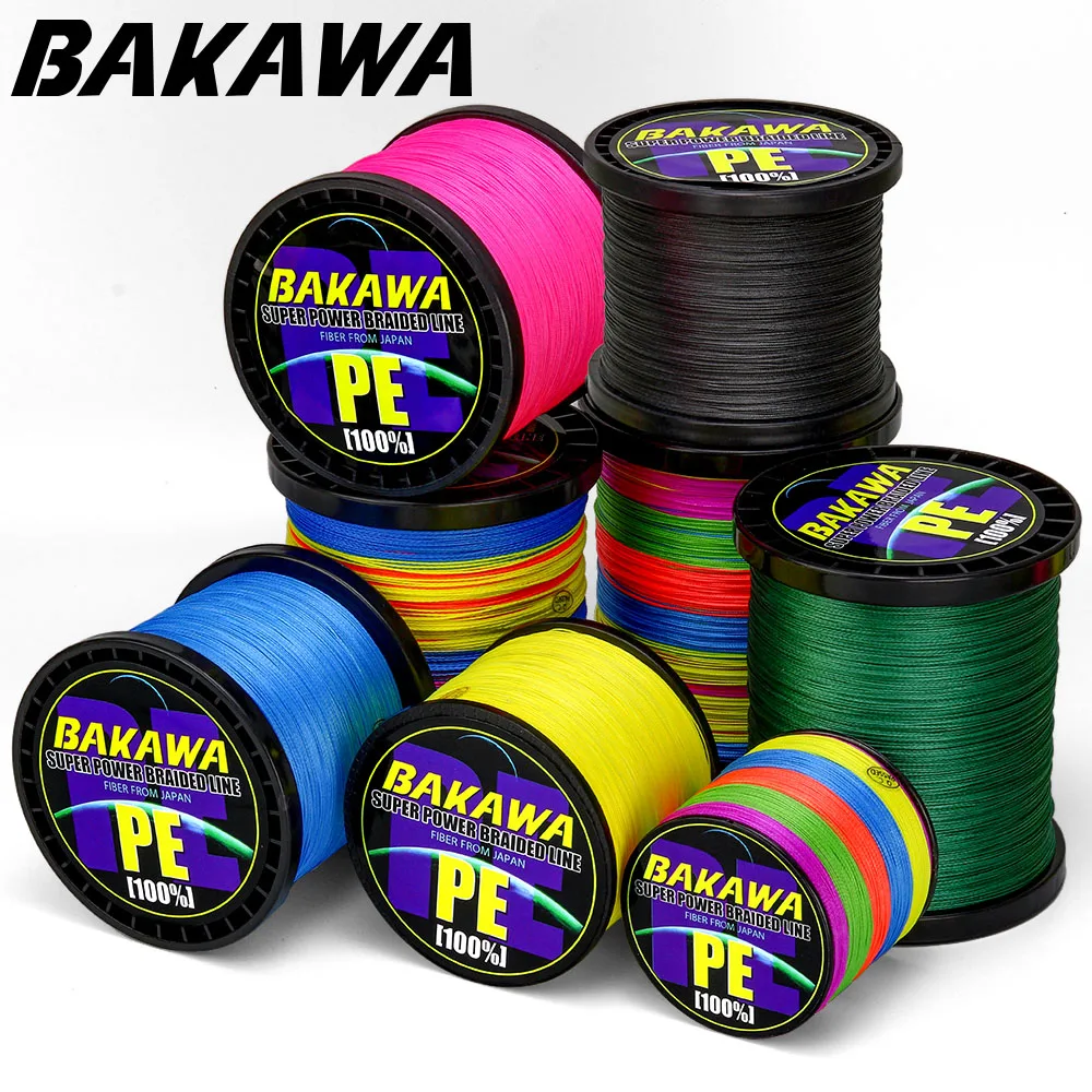BAKAWA 300M 500M 1000M 8 hebras súper fuerte 4 líneas de Pesca trenzadas PE multifilamentos para carpa Alambre de Pesca cuerda Pesca Peche 120LB a 10LB.