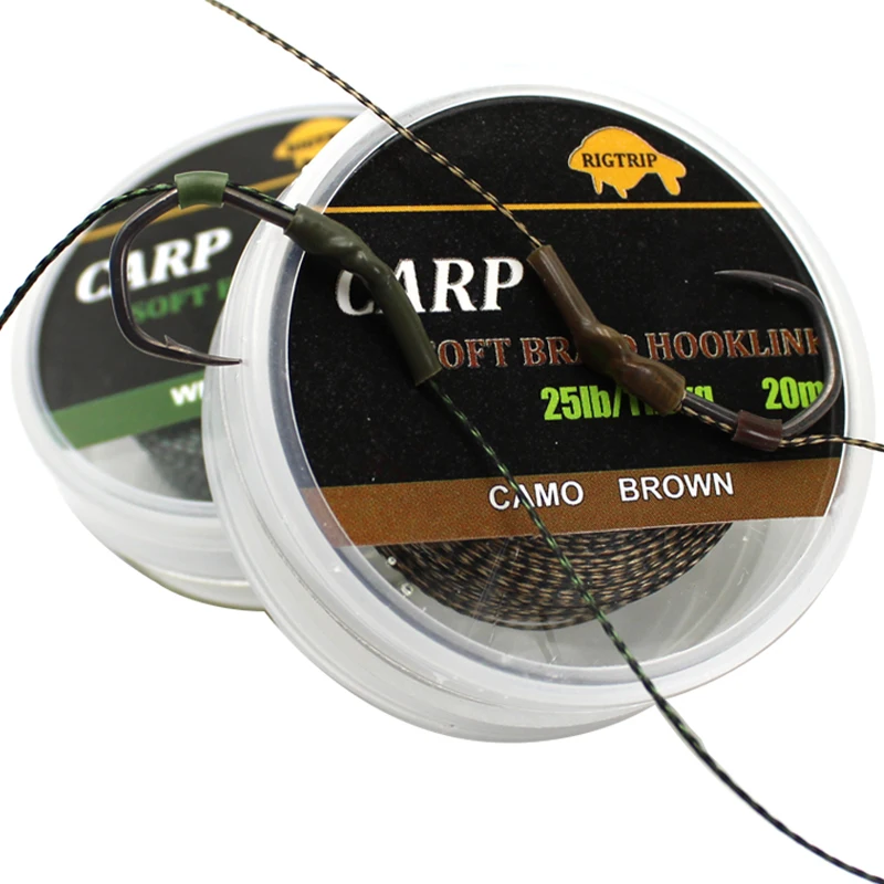 Línea de pesca de carpa de 20m, enlace de gancho suave, enlace de gancho de carpa, línea trenzada sin recubrimiento para aparejo de cabello 15IB 25IB 35IB, aparejos de pesca gruesos de carpa