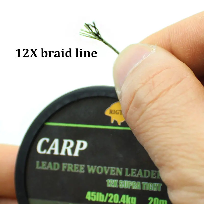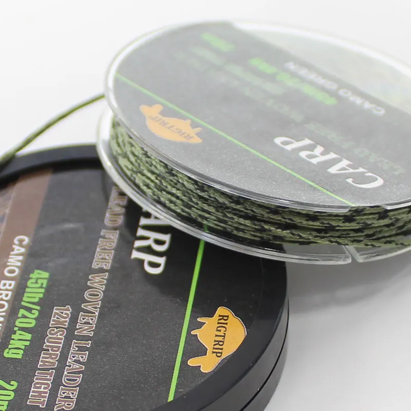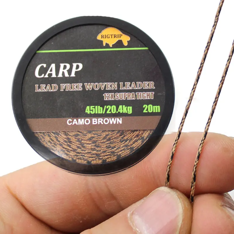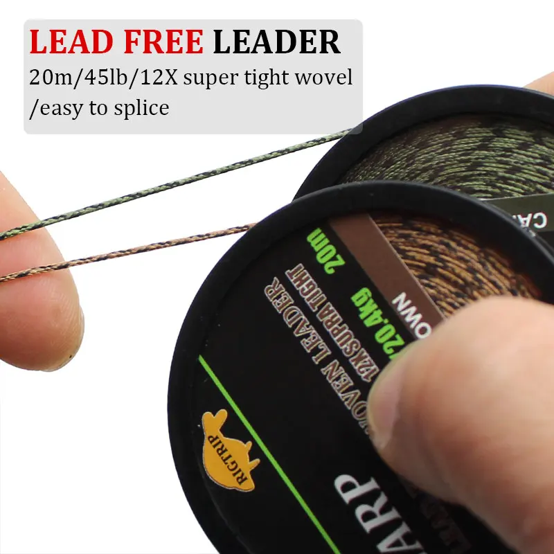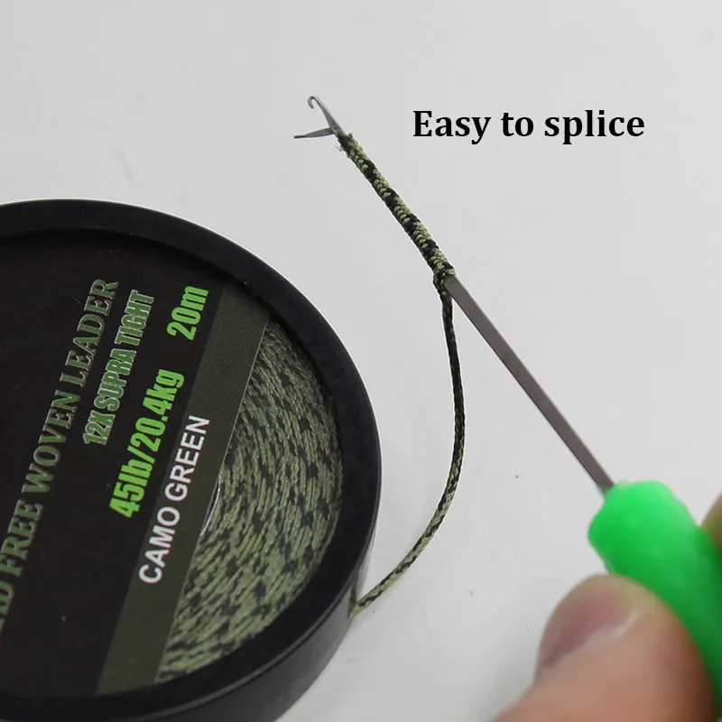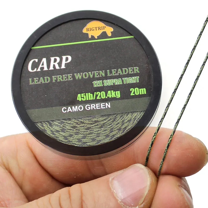 Línea de pesca de carpa de 20m, sin núcleo de plomo trenzado, línea líder de carpa, línea principal verde camuflaje, núcleo de hoja para aparejo de carpa, aparejo de helicóptero Chod